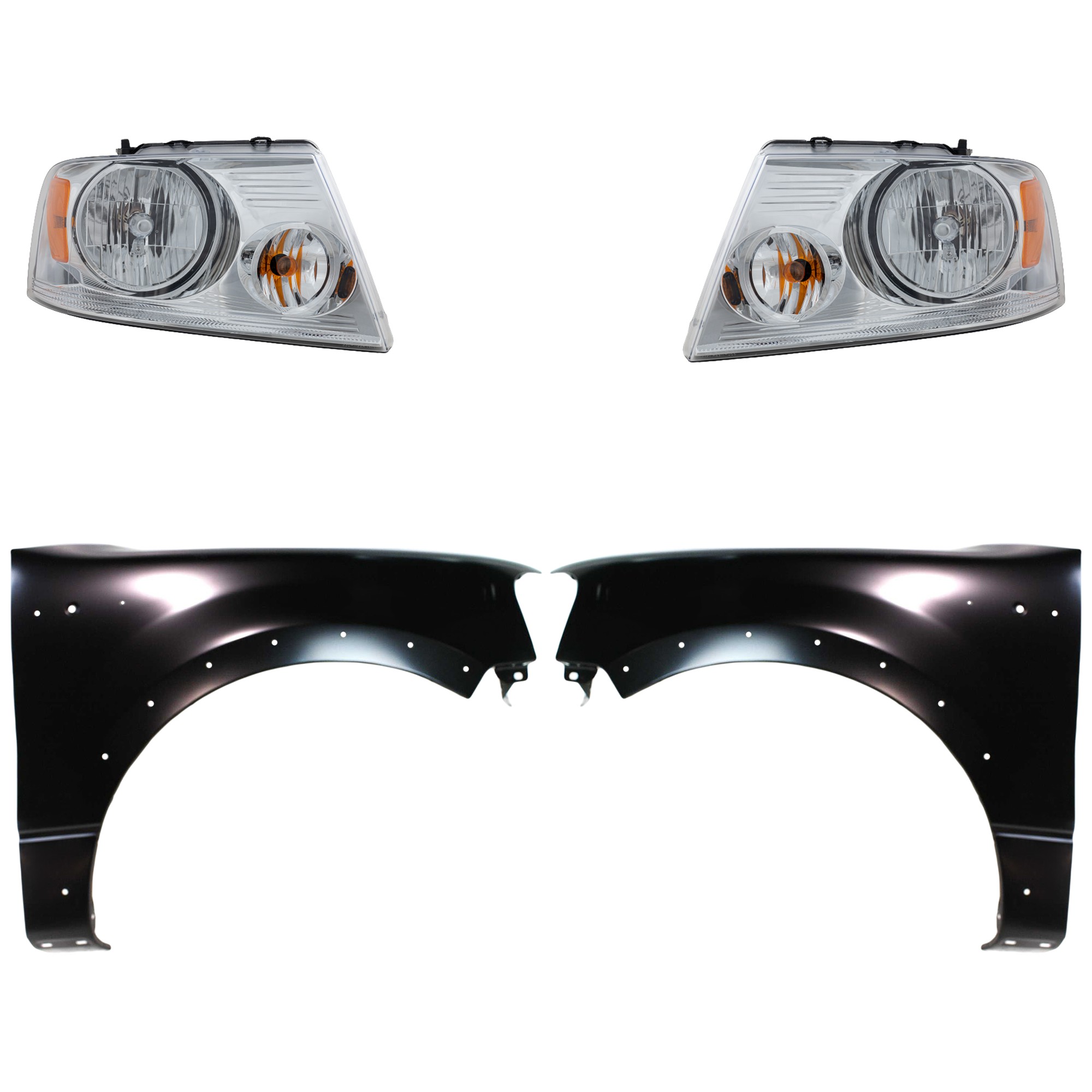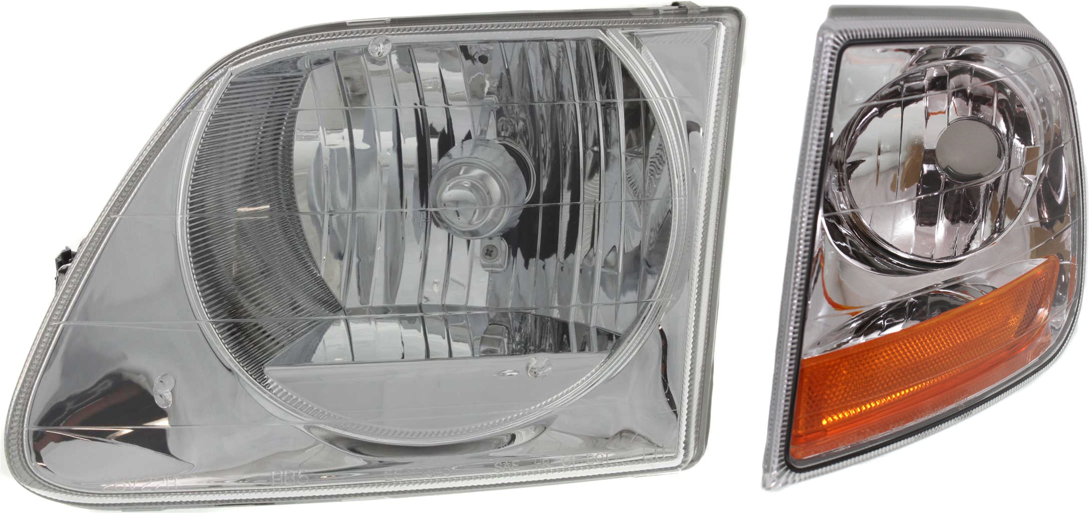 Headlight Assembly Pair/Set for Ford F-150 2004-2008, Mark LT 2006, Halogen, Right (Passenger) and Left (Driver), Chrome Bezel Replacement