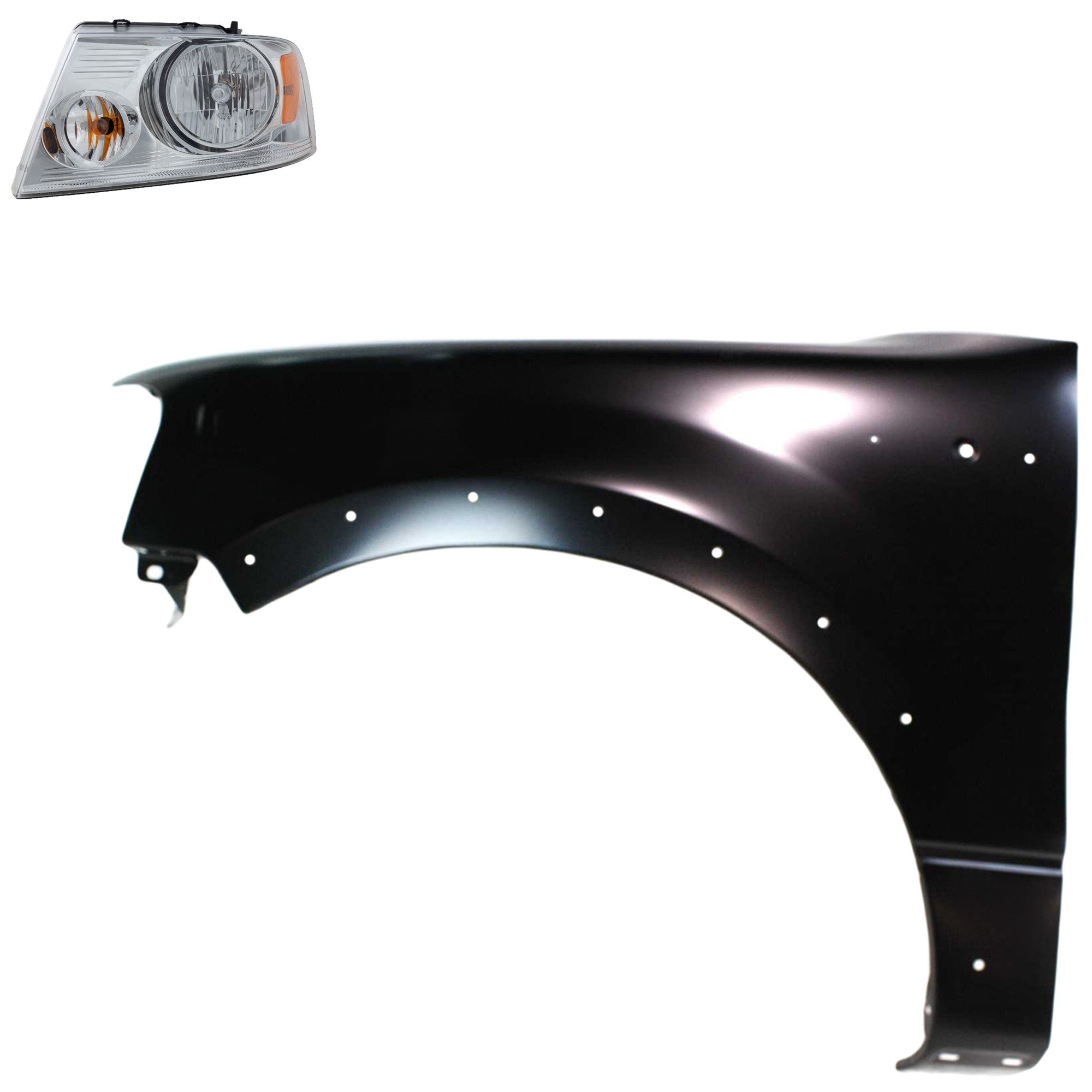Headlight Assembly for Ford F-150/F-250/F-350 (1987-1991), Left (Driver) Halogen, 2-Piece Kit with Fender, Replacement