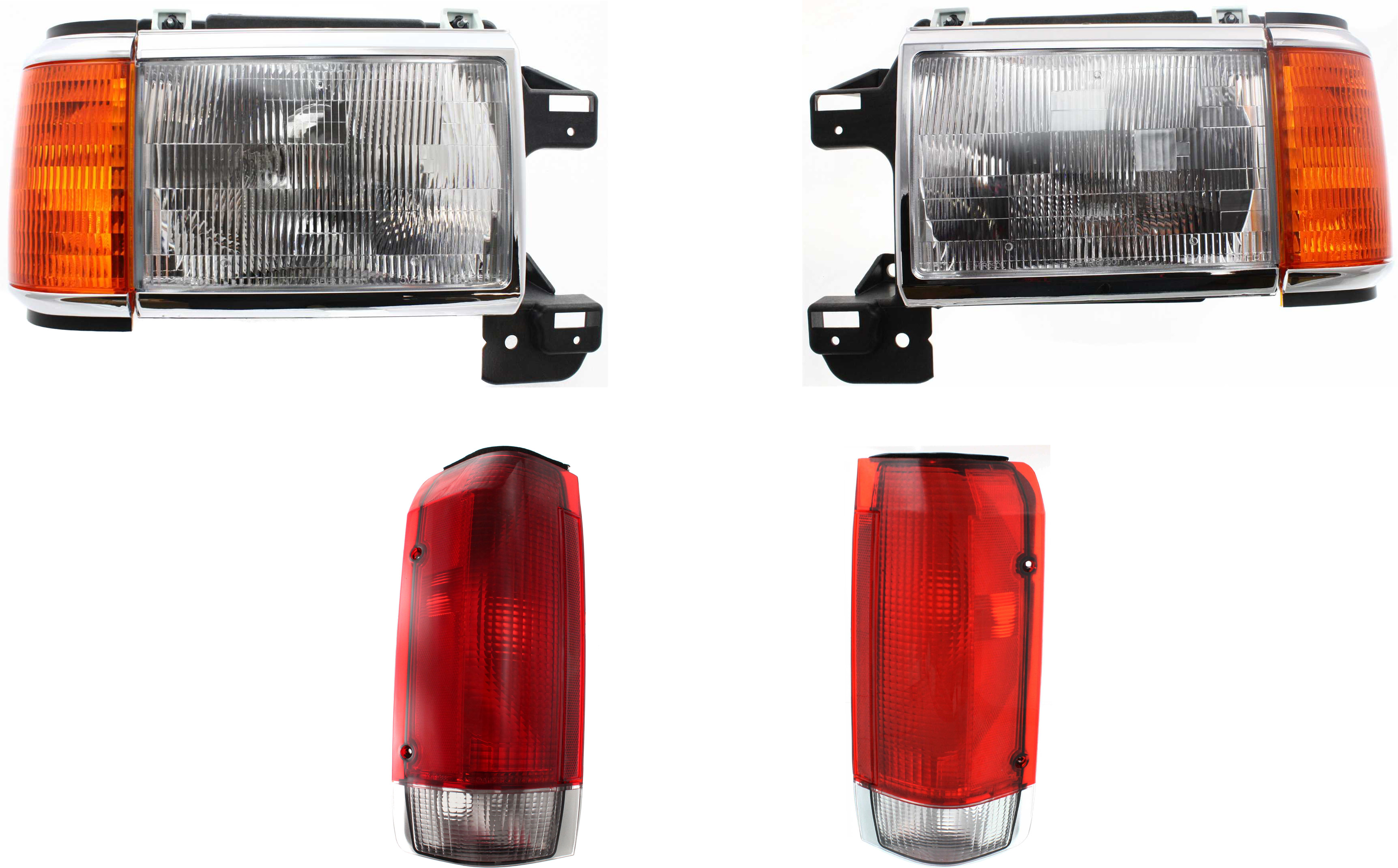 Headlight Assembly for 1990-1991 Ford F-Series, Right (Passenger) and Left (Driver), Halogen, 4-Piece kit with Tail Lights, Replacement - fits F-150, F-250, F-350.