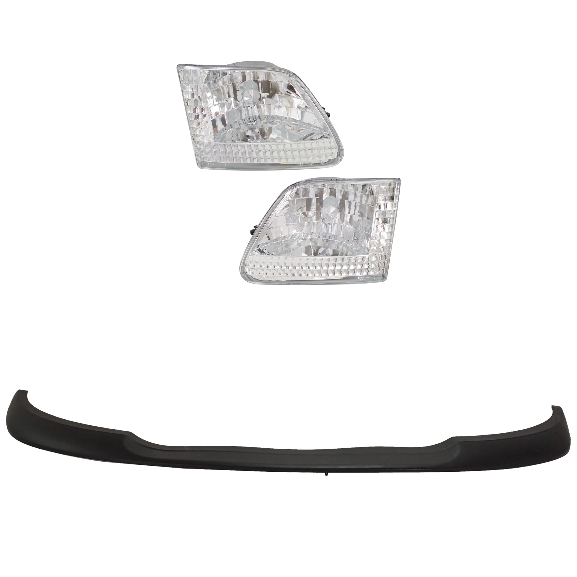 Performance Headlight Set for 1992-1997 Ford F-150 Custom Standard Cab Pickup (5.0L, 5.8L, 4.9L, 3.8L), Clear Lens, Diamond Design, LKQ Platinum Plus Brand, FO2505102, Replacement