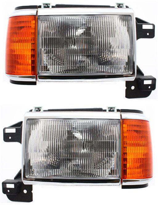 Headlight Assembly Pair/Set for Ford F-Series 1987-1991, Right (Passenger) and Left (Driver), Halogen, with Side Marker Light, without Trim, Replacement Models: for F-150, F-250, F-350