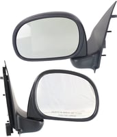 Mirror Pair/Set for Ford F-150 1997-2002, F-250 1997-1999, Right (Passenger) and Left (Driver), Non-Towing, Manual Adjust, Manual Folding, Non-Heated, Textured Paddle Style, To 2-11-02, All Cab Types, Replacement