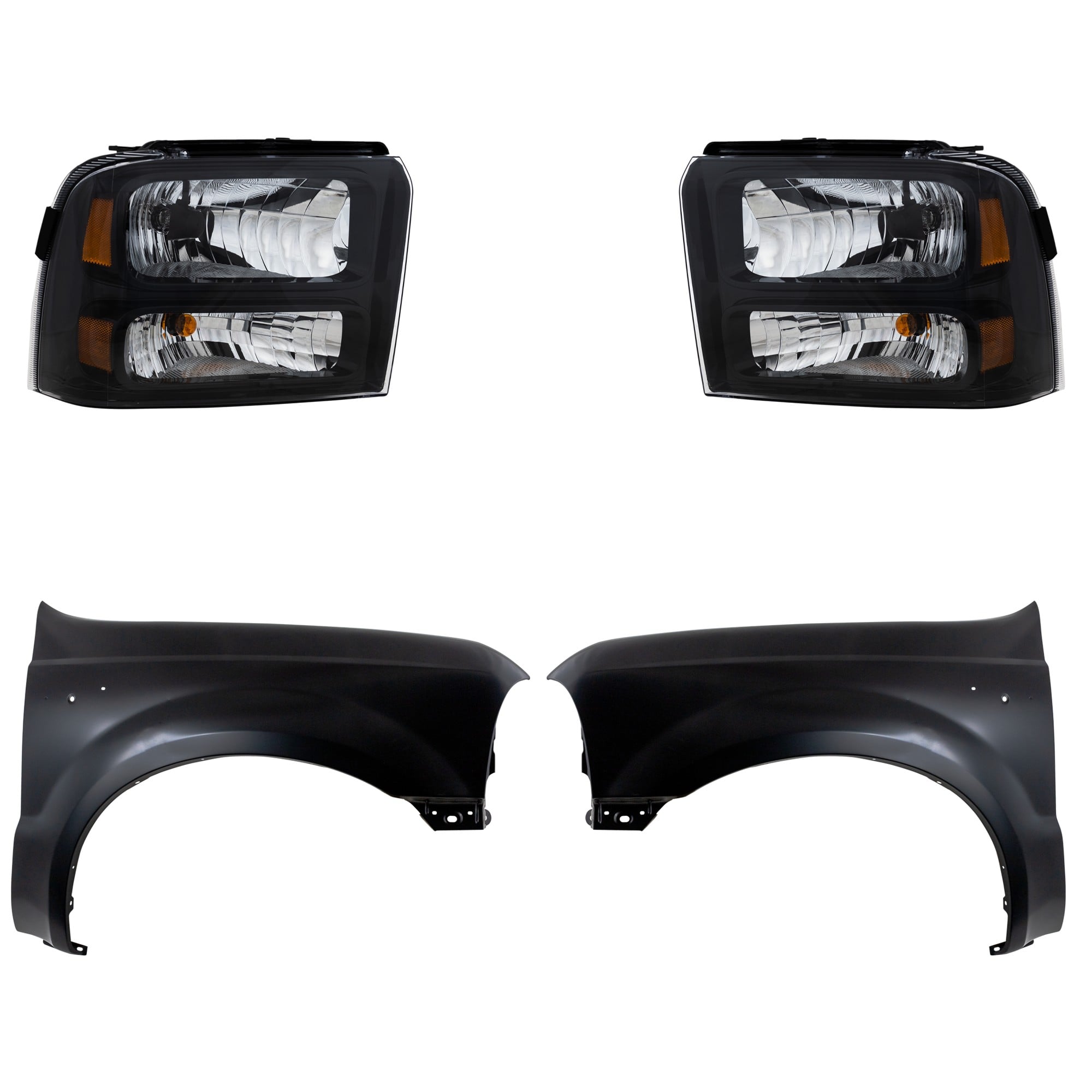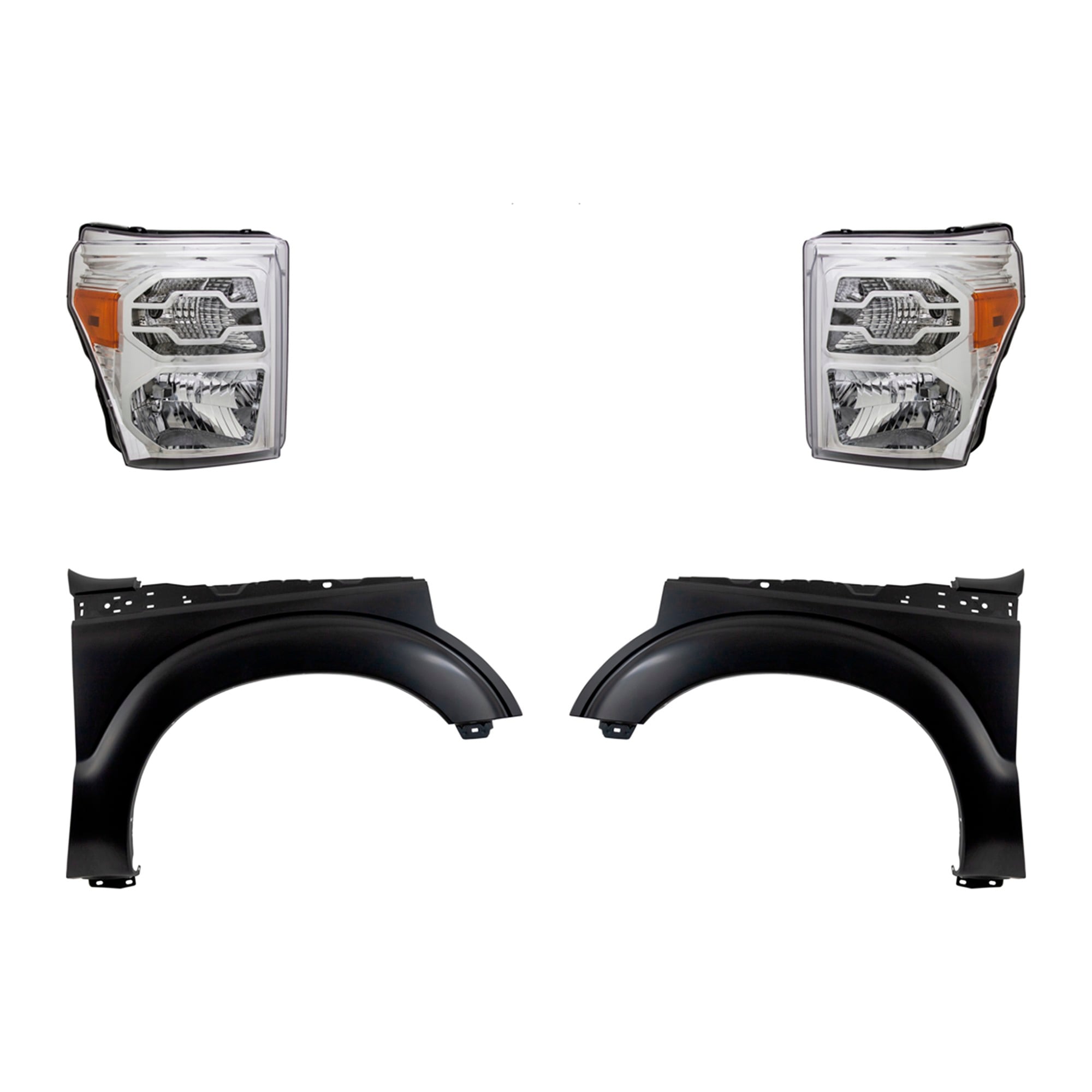 Headlight Kit for Ford F-350/F-250 Super Duty (2011-2016), Right (Passenger) and Left (Driver), Lens and Housing, Halogen, 4-Piece Set, Inclusive of Fenders, Replacement