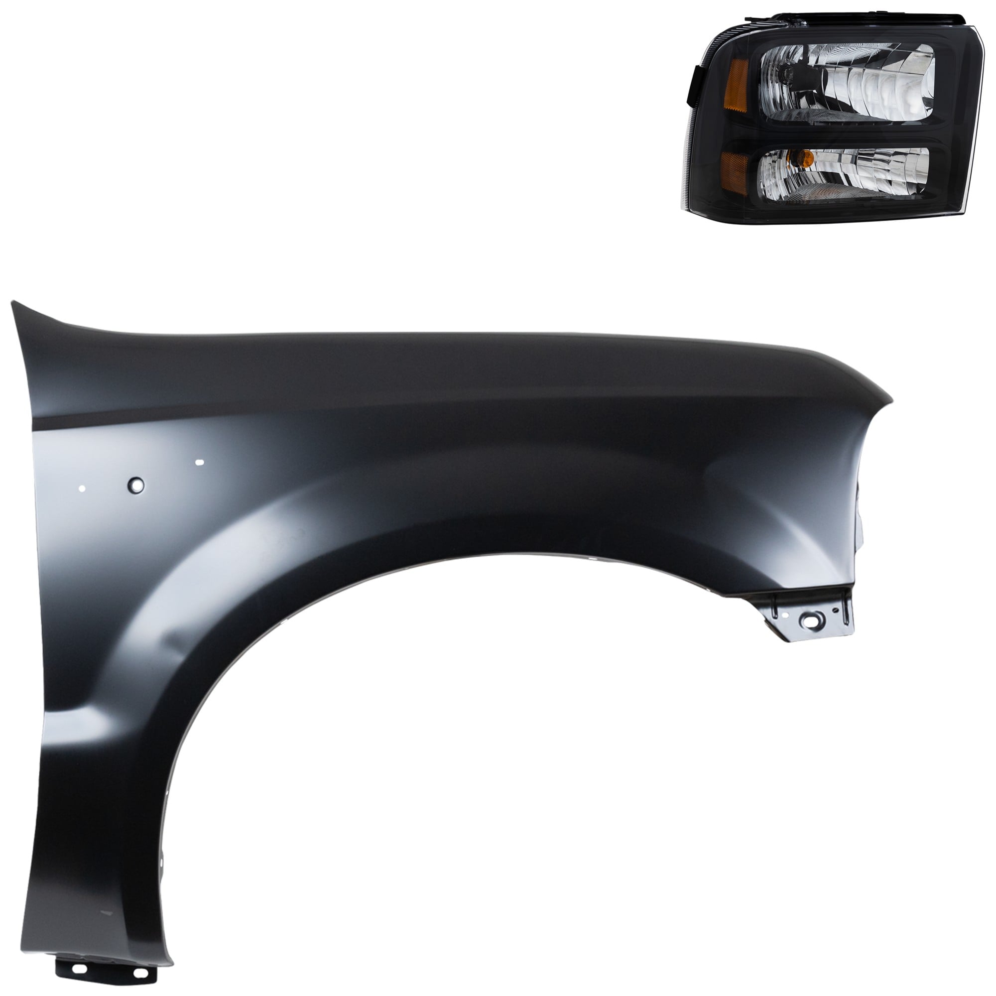 Headlight Assembly for Ford F-250 Super Duty/F-350 Super Duty 2005-2007, Left (Driver), Halogen, 2-Piece Kit, with Fender, Replacement