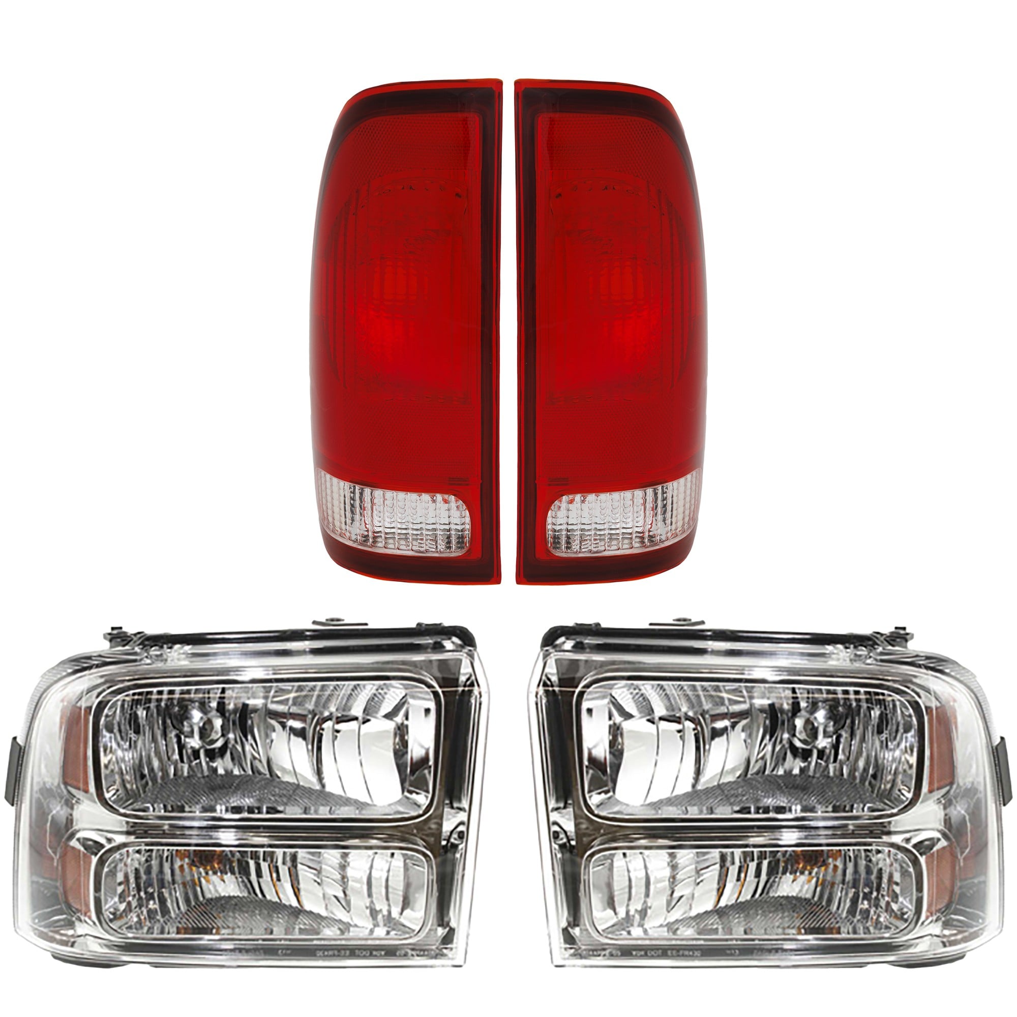 Headlight and Tail Light Kit for Ford F-250/F-350 Super Duty 2005-2007, Right (Passenger) and Left (Driver) Sides, with Bulbs, 4-Piece kit, Replacement