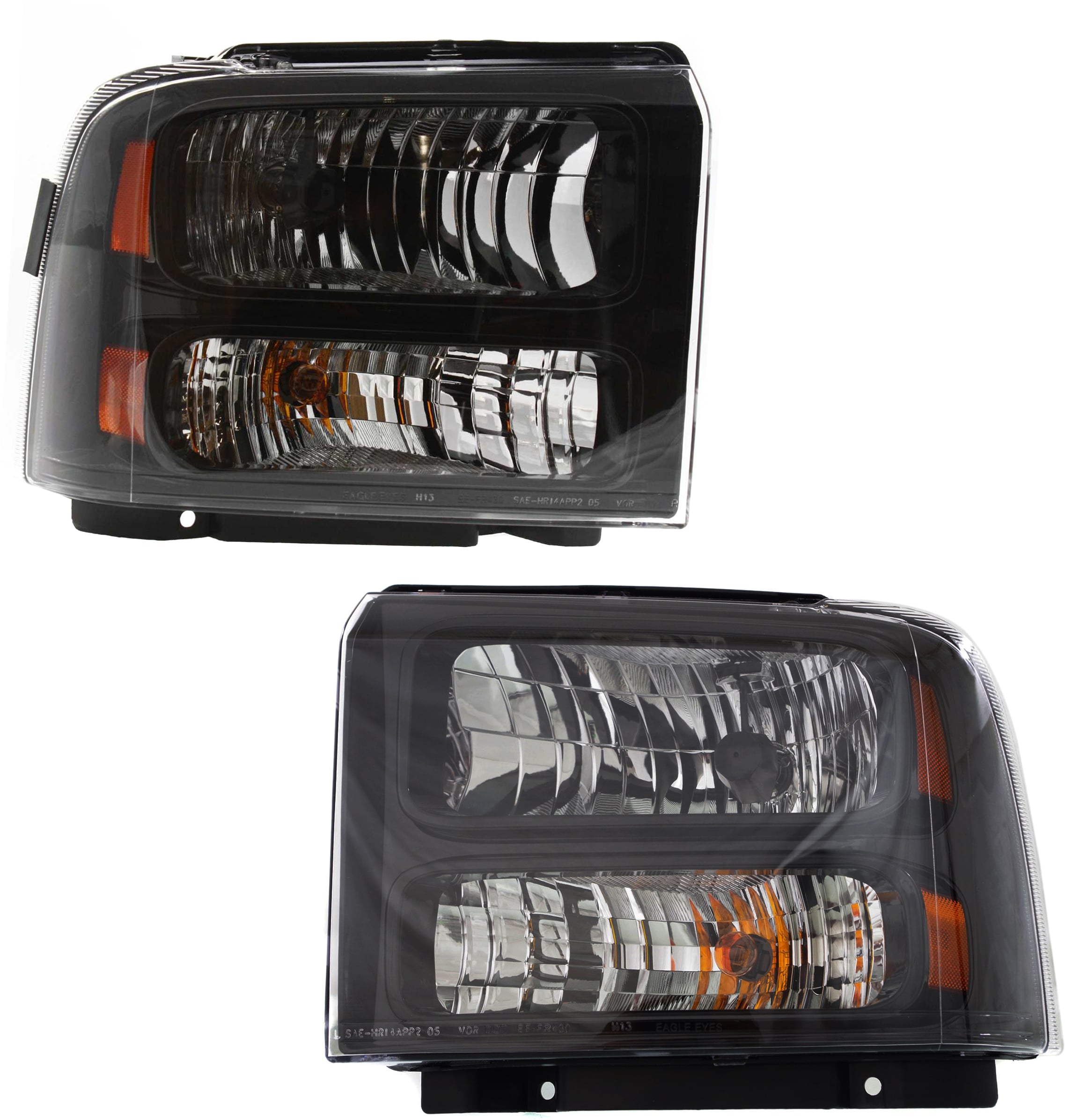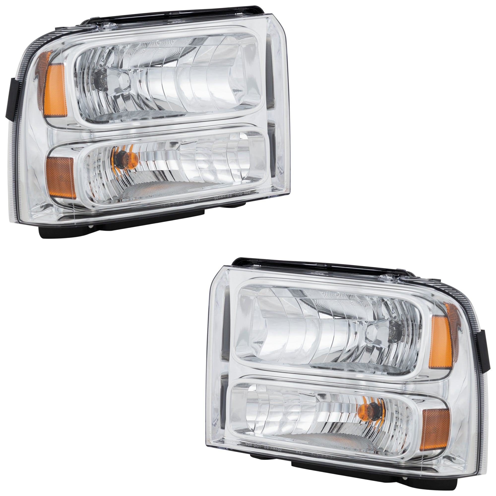 Pair/Set - Headlight Assembly for Ford Excursion (2000-2004), F-Series Super Duty (1999-2004), Right (Passenger) and Left (Driver), Halogen Replacement - Fits F-250, F-350, F-450, F-550.