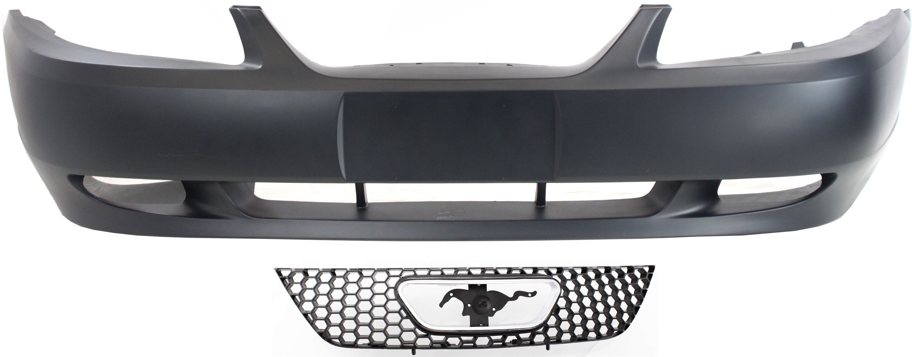Front Bumper Cover for Ford Mustang 1999-2004, 2-Piece Kit without Emblem, with Grille, Replacement