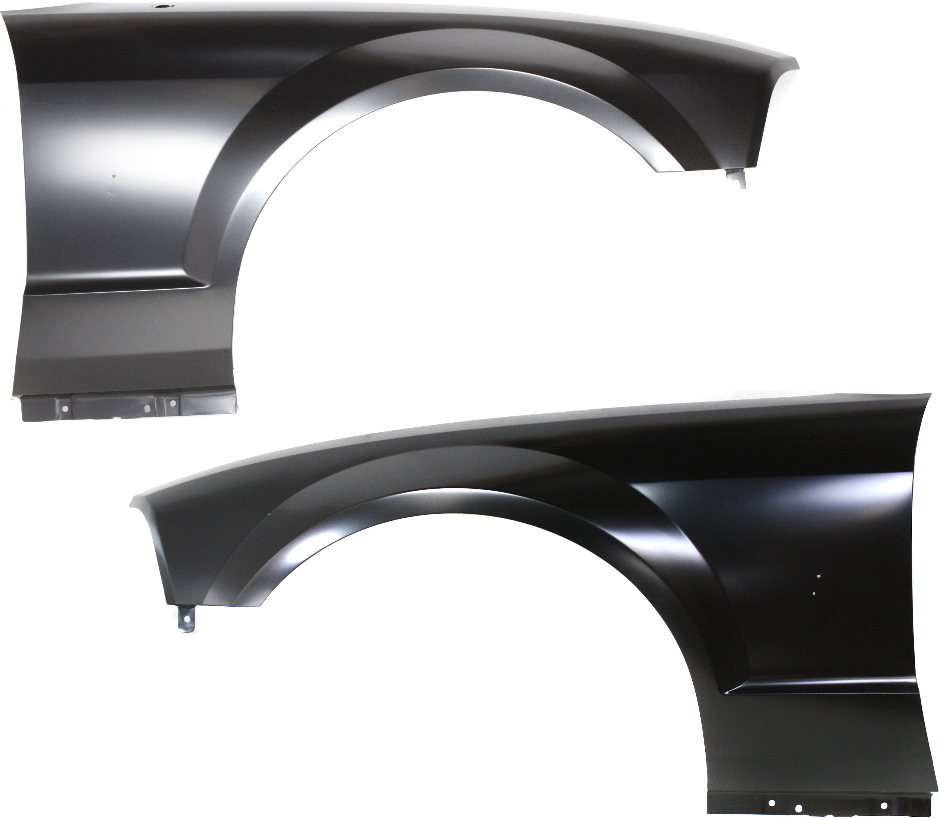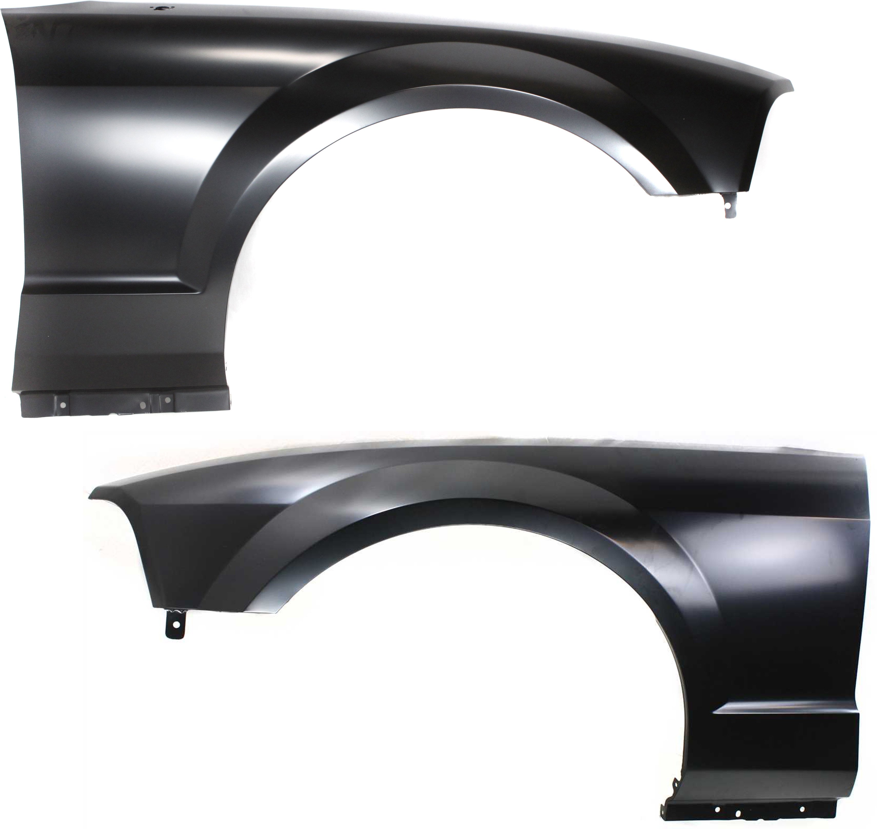 Front Fender Pair/Set for 2005-2009 Ford Mustang, Right (Passenger) and Left (Driver), Primed (Ready to Paint), Without Wheel Opening Molding Holes, Replacement