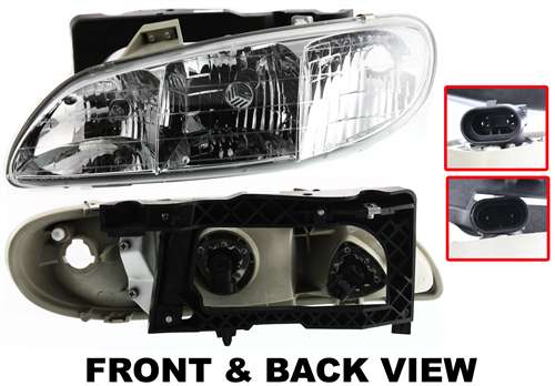 Fits Years: 1996 1997 1998 Headlight Assembly for Pontiac Grand Am 1996-1998, Halogen, Left (Driver), Replacement