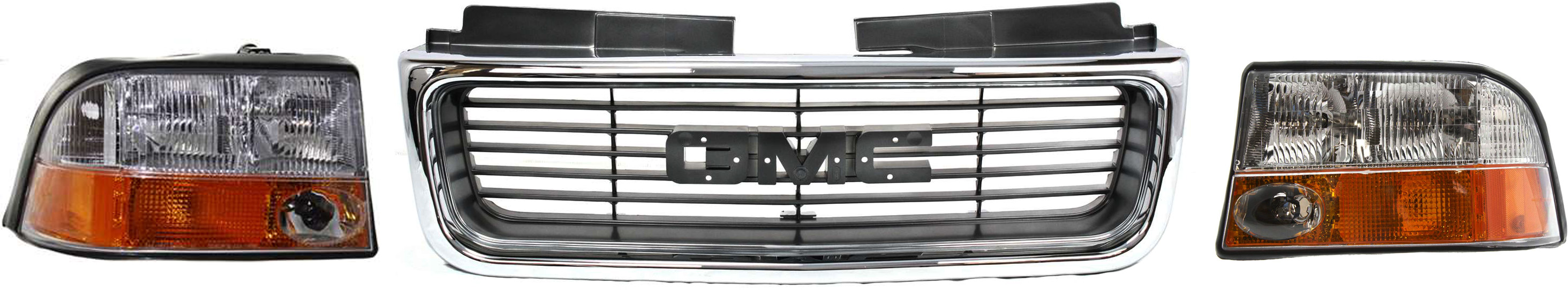 Headlight Assembly Kit for GMC Jimmy 1998-2005/Sonoma 1998-2004, Right (Passenger) and Left (Driver) Sides, Halogen, 3-Piece Set, Includes Grille, Replacement