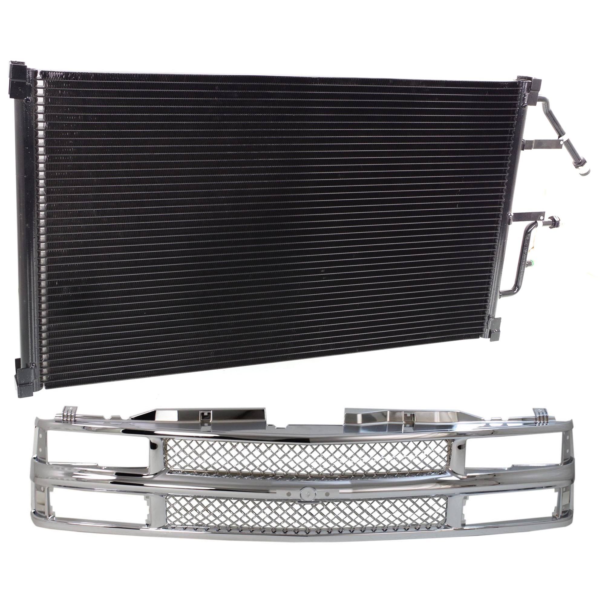Chrome Shell and Mesh Insert Grille Kit for 1994-2000 Chevrolet C2500/C3500/K2500, with Air Conditioning Condenser, 2-Piece Replacement