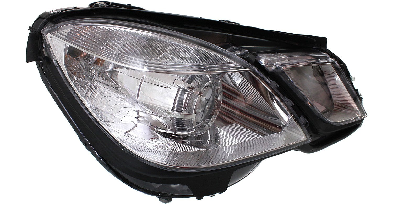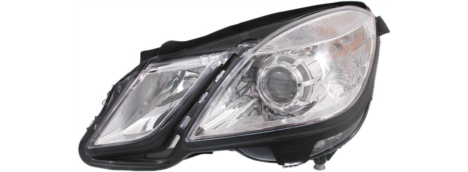 Headlight Assembly Pair/Set for Mercedes Benz E-Class 2010-2013 (W/O Cornering Lights, Sedan/Wagon), Halogen, Right (Passenger) and Left (Driver) Replacement
