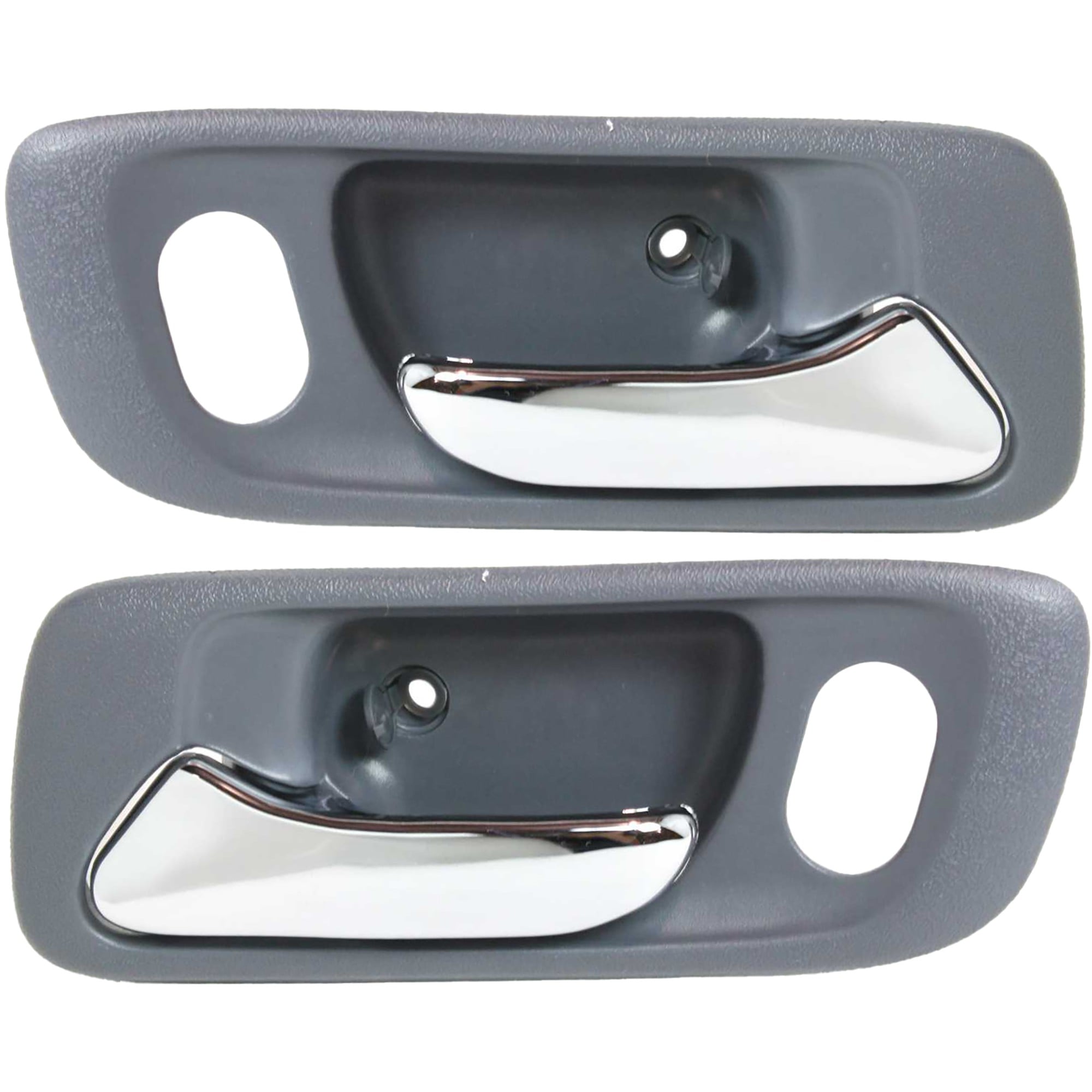 Front Door Handle Pair/Set for Honda Odyssey 1999-2004, Right (Passenger) and Left (Driver), Inside, Chrome Lever with Gray Housing and Hole, Replacement