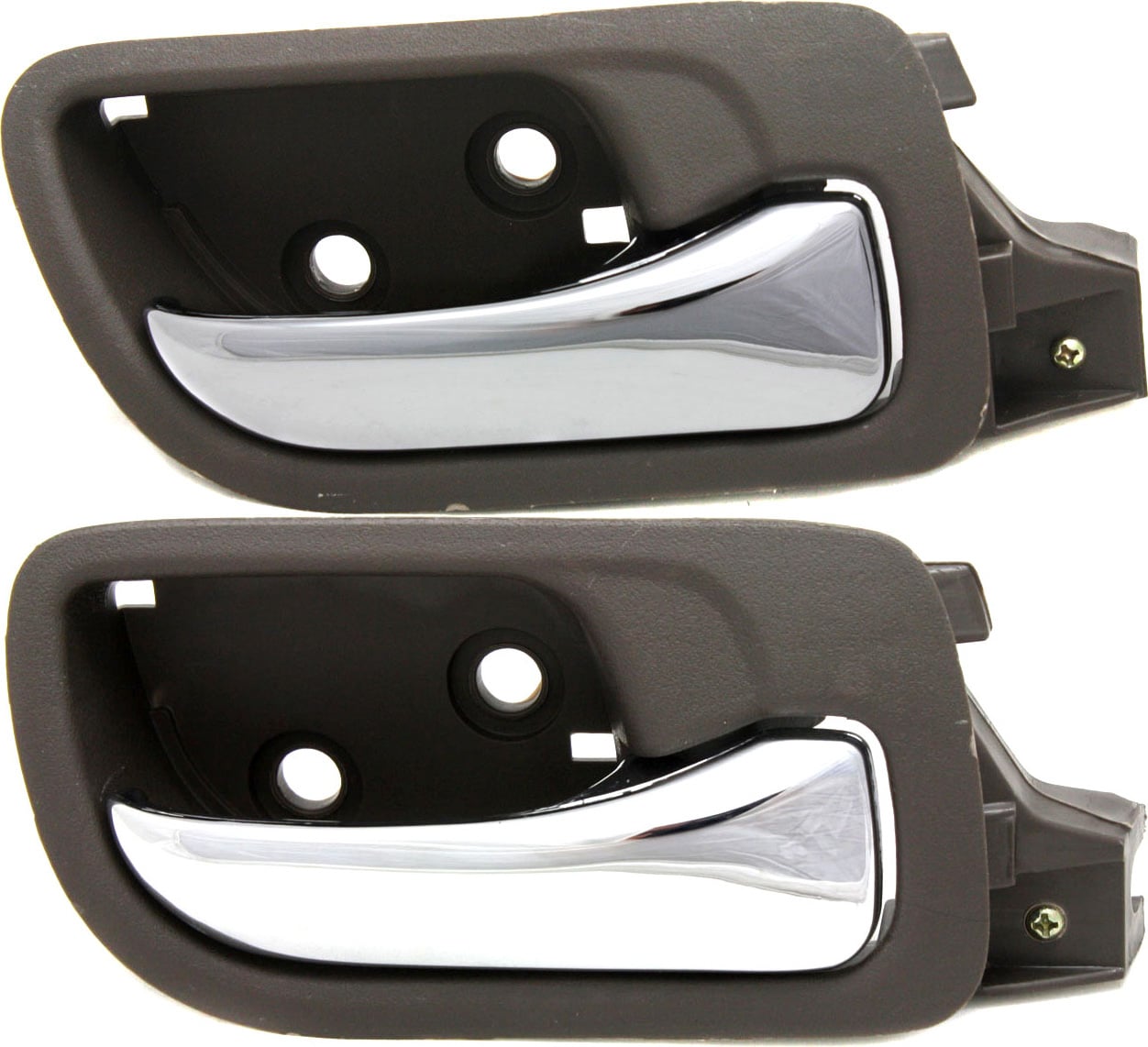 Front Interior Door Handle Pair/Set for 2007 Honda Accord, Right (Passenger) & Left (Driver), Chrome Lever + Brown (Taupe) Bezel, Plastic, Sedan Replacement