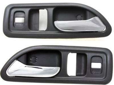 Rear Door Handle Pair/Set for 1998-2002 Honda Accord, Right (Passenger) and Left (Driver), Inside Handle with Chrome Lever and Gray Housing, Sedan, Without Hole, Replacement
