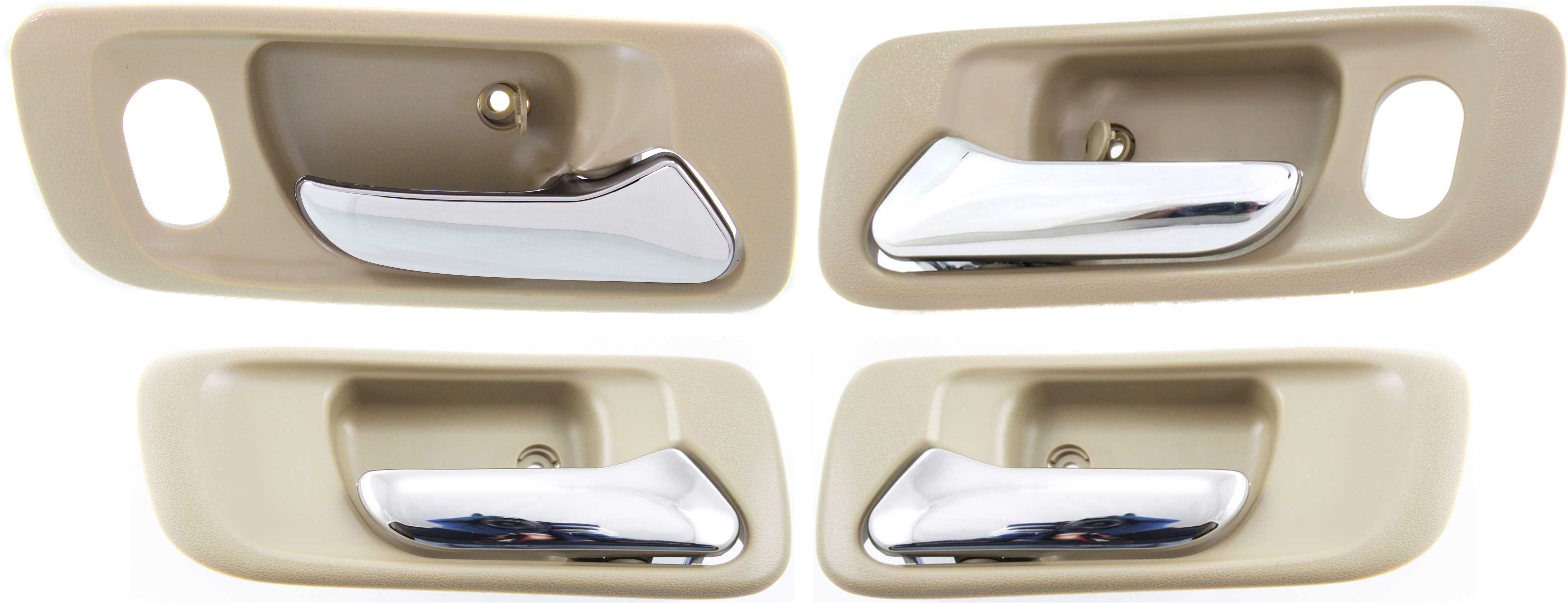 Rear Door Handle Pair/Set for 1998-2002 Honda Accord, Right (Passenger) and Left (Driver), Interior, Chrome Lever + Beige Housing, Sedan, without Hole, Replacement