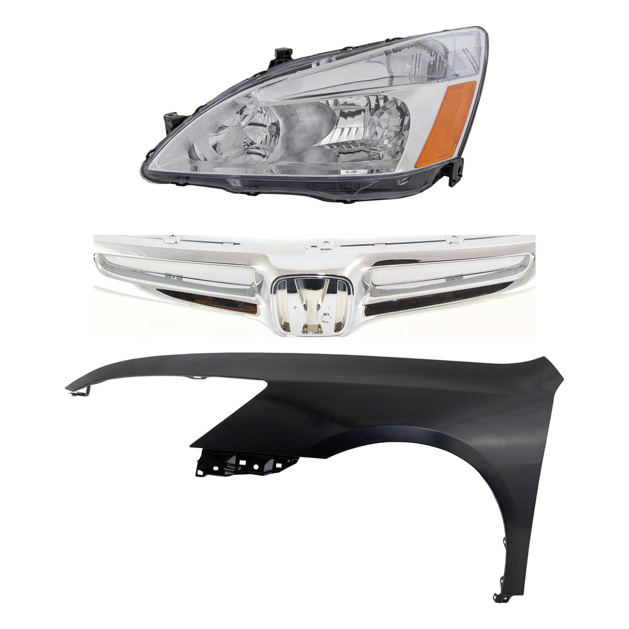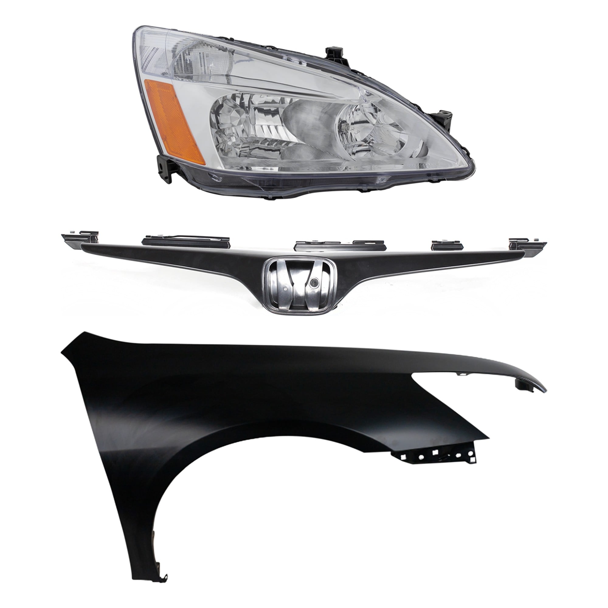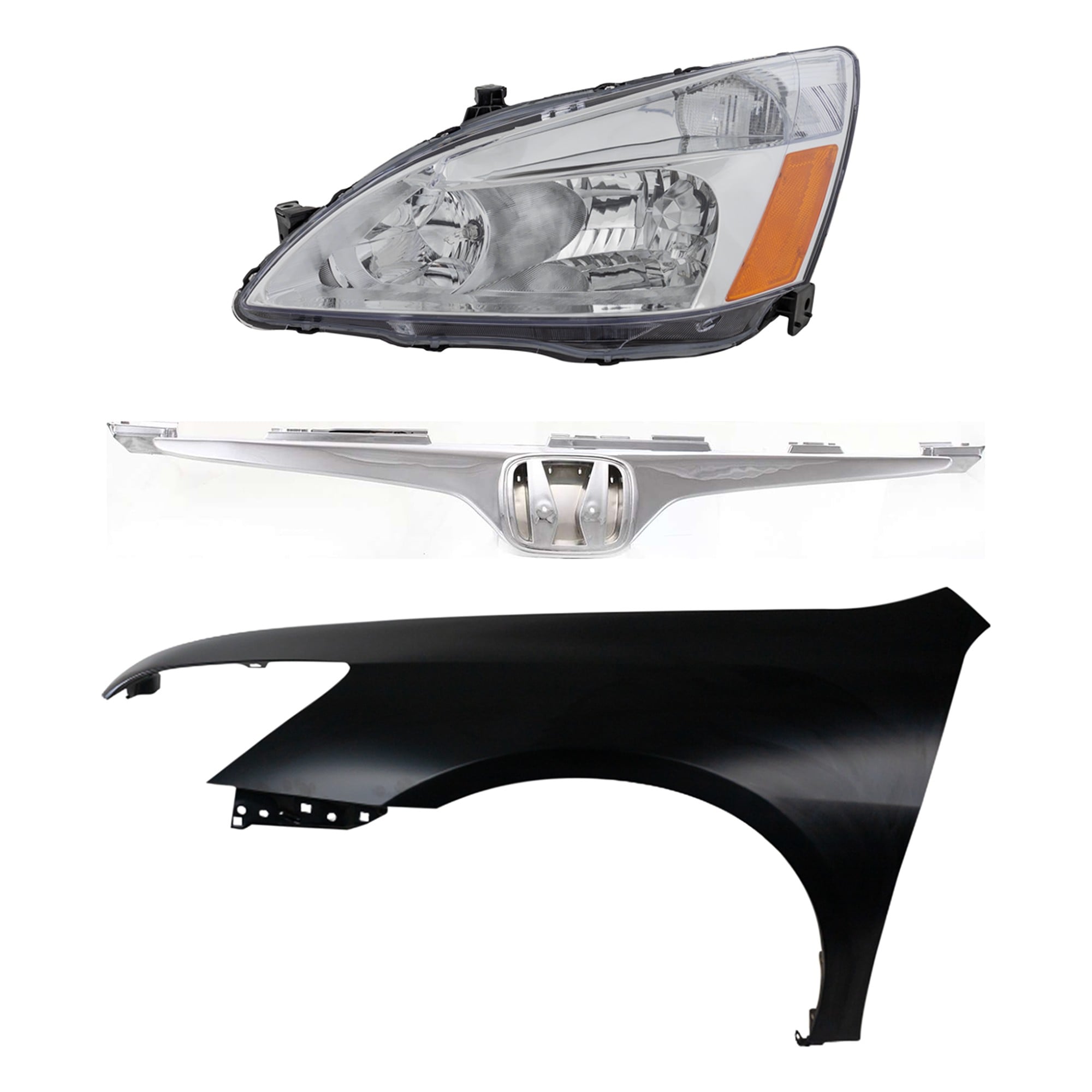 Headlight Assembly Kit for 2008-2010 Honda Accord, Right (Passenger) Side, Halogen, 3-Piece Kit, with Fender and Grille - (CAPA) Replacement