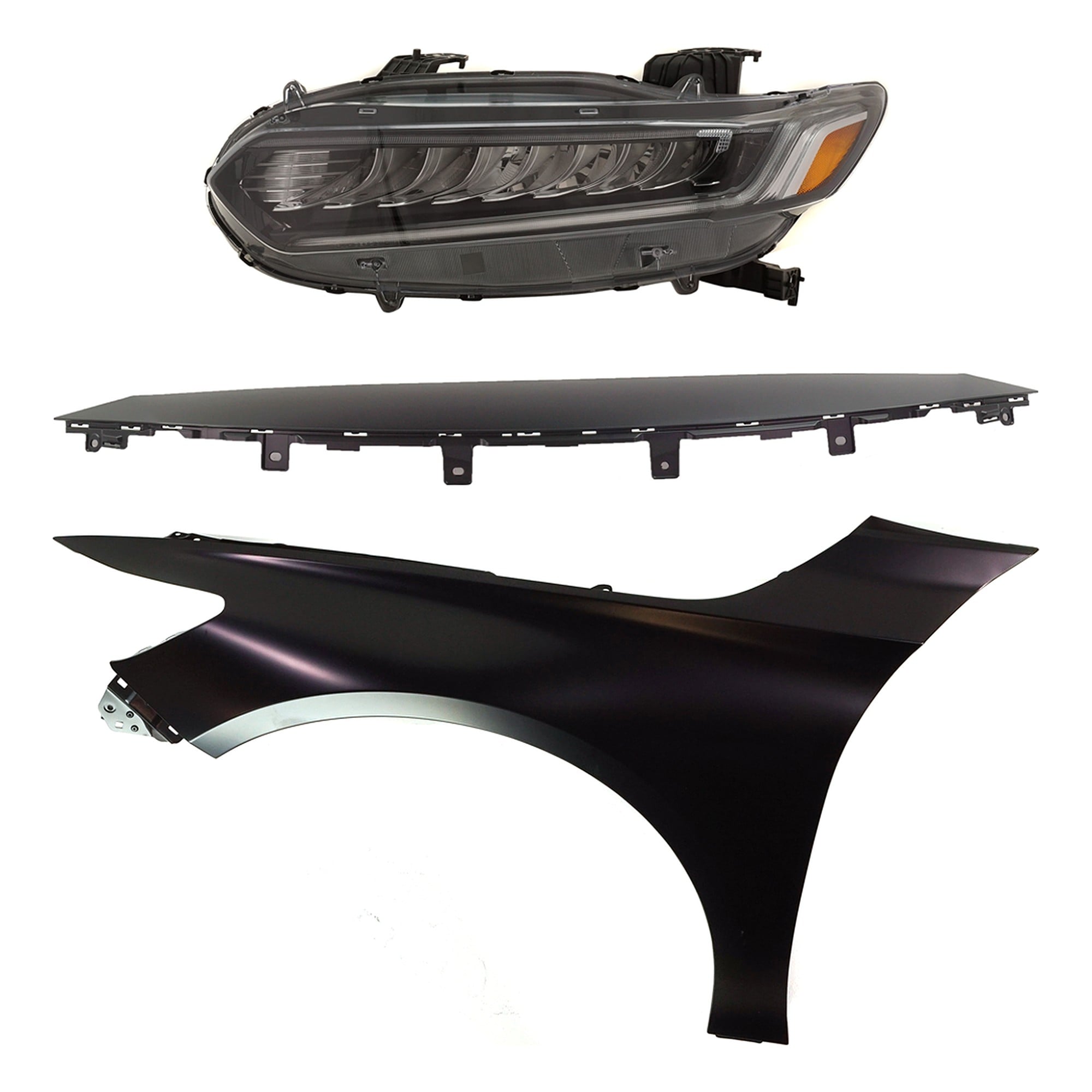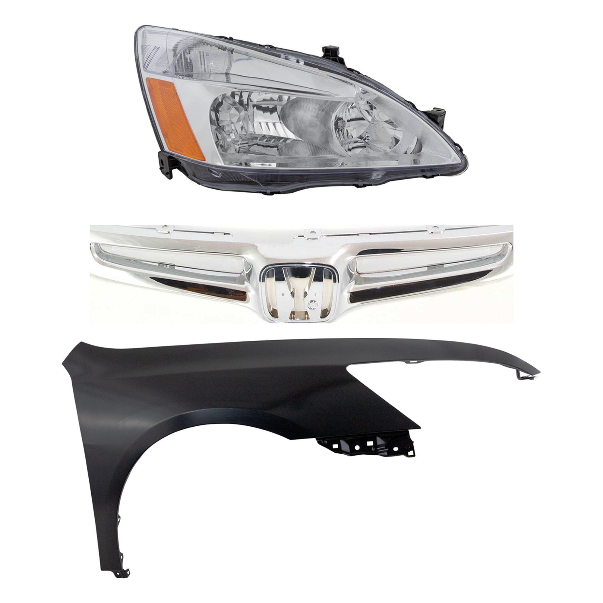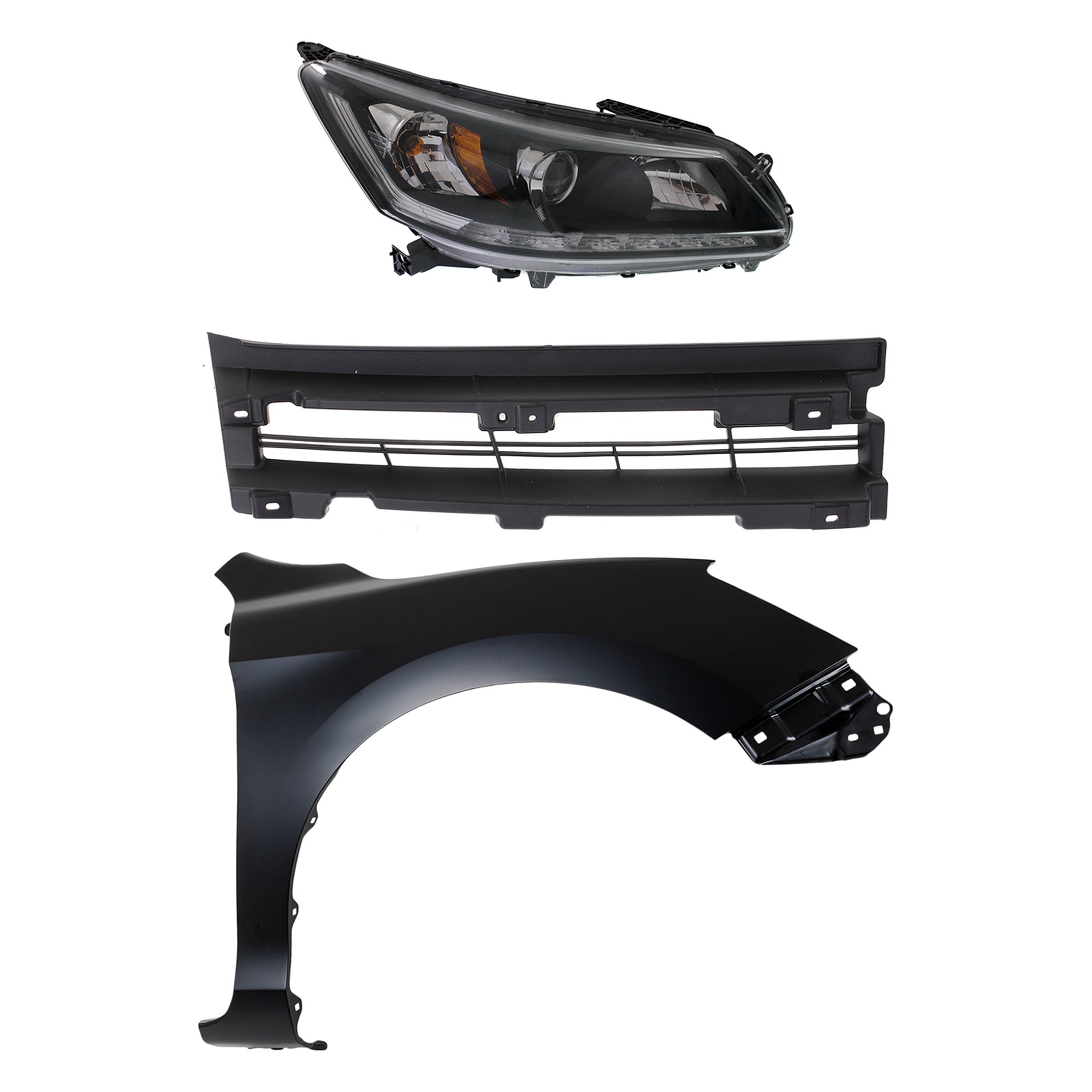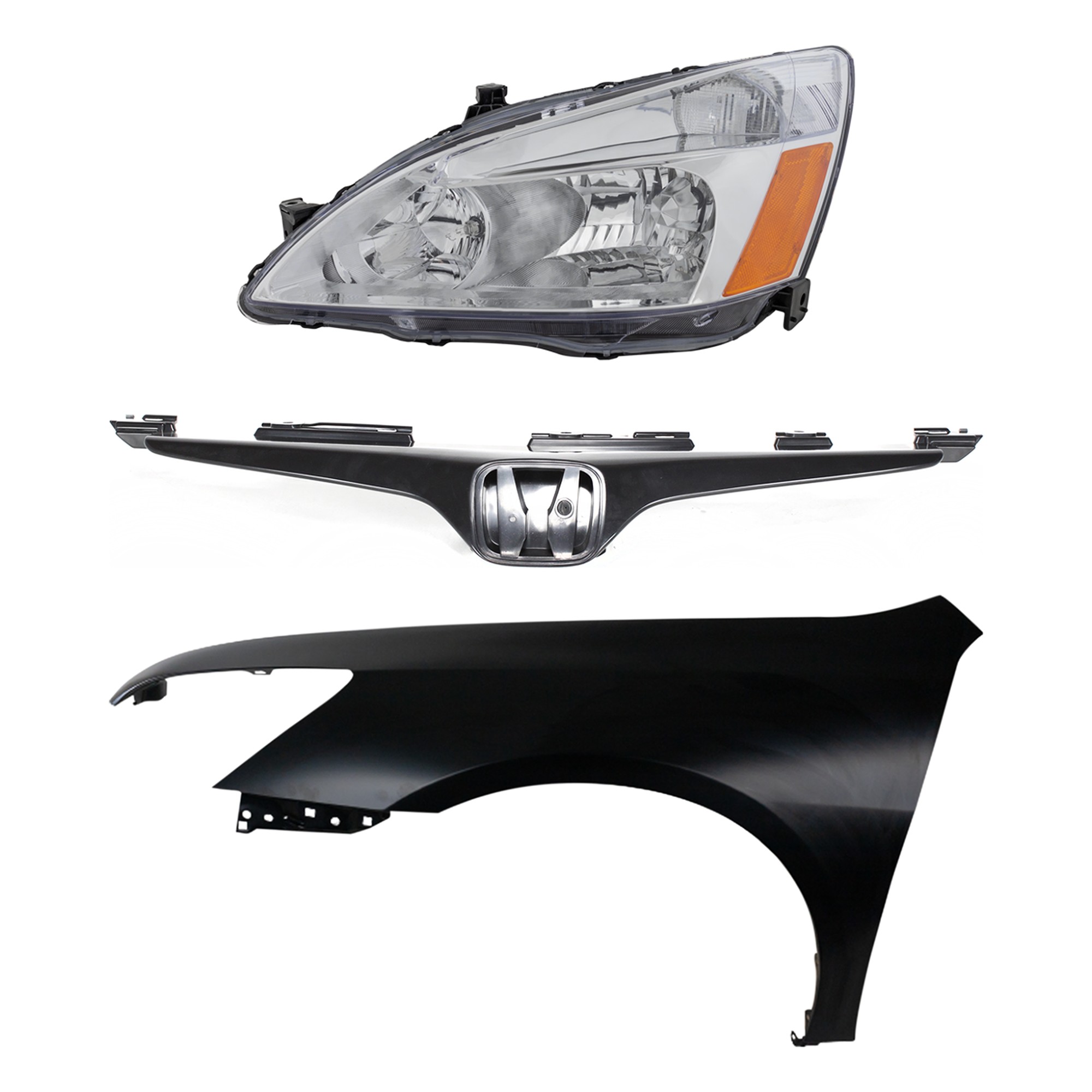 Headlight Assembly Kit for 2008-2010 Honda Accord, Right (Passenger) Side, Halogen, 3-Piece Kit, with Fender and Grille - (CAPA) Replacement
