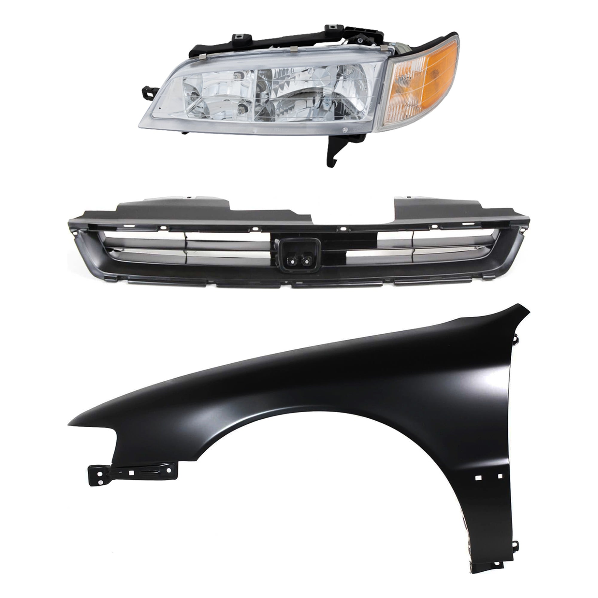 Headlight Assembly Kit for Honda Accord 1996-1997, Right (Passenger) Side, Halogen, 3-Piece Kit with Fender and Turn Signal Light, Replacement
