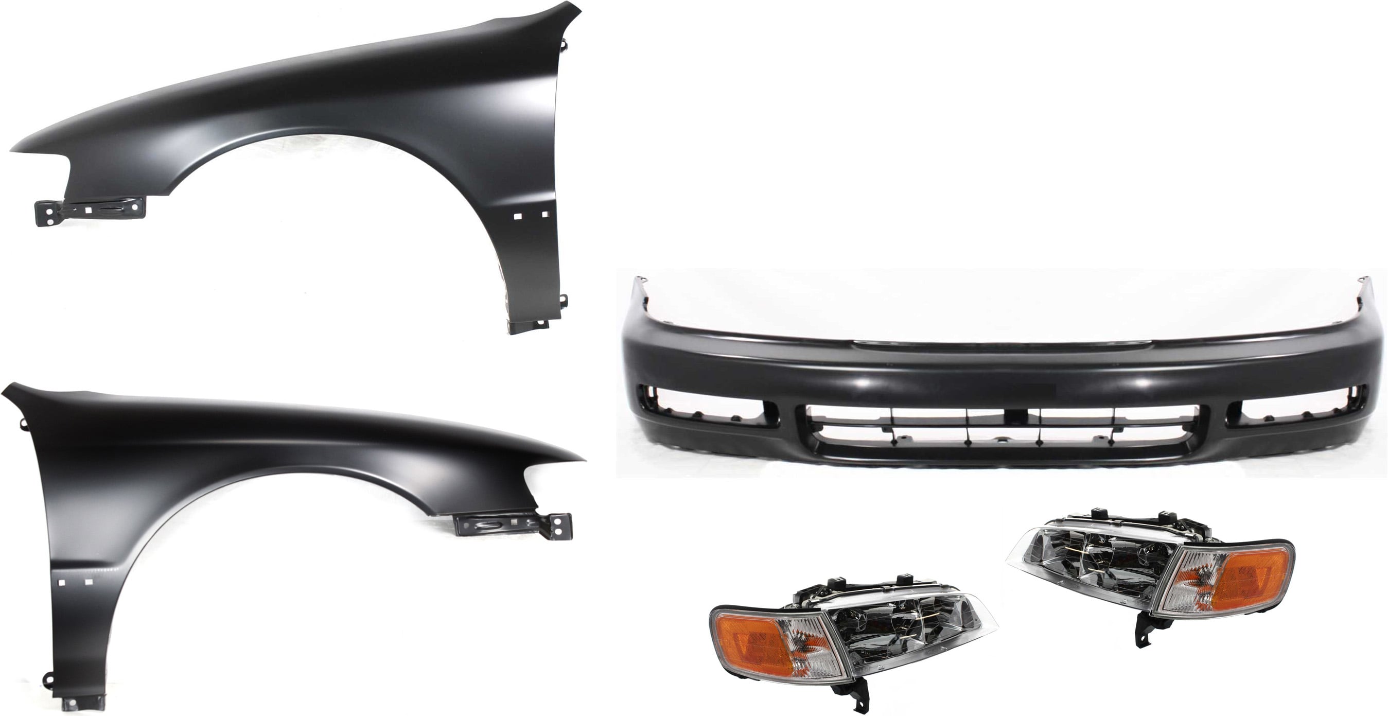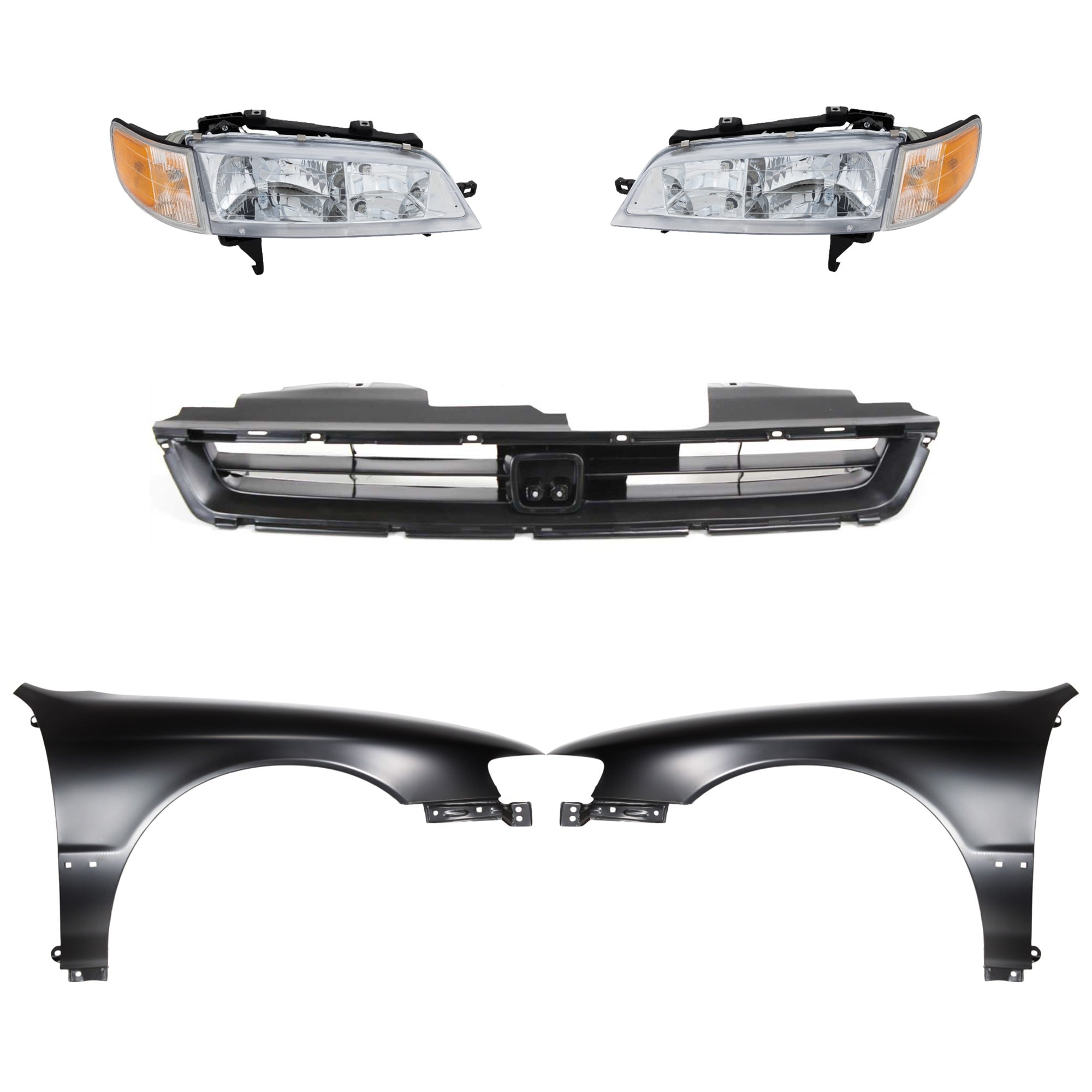 Headlight Assembly Kit for Honda Accord 1996-1997, Left (Driver) Side, Halogen, 4-Piece with Fender, Fender Liner, and Turn Signal Light, Replacement