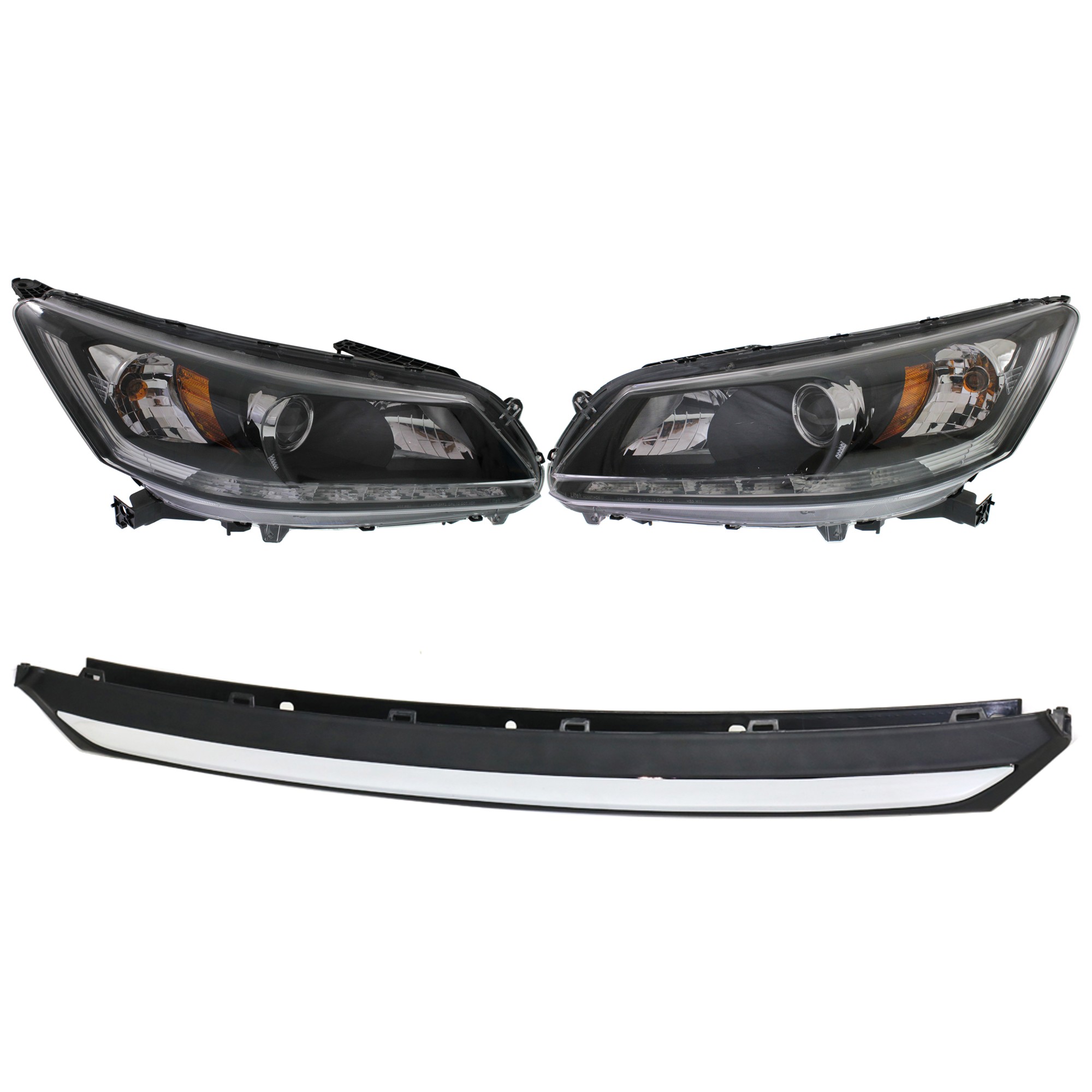 Headlight Assembly Kit for 2013-2015 Honda Accord Coupe, 4-Cyl., 4-Piece Set, Includes Right (Passenger), Left (Driver) Headlights, Halogen, with Bumper Trim, Exc. Touring Models, Replacement