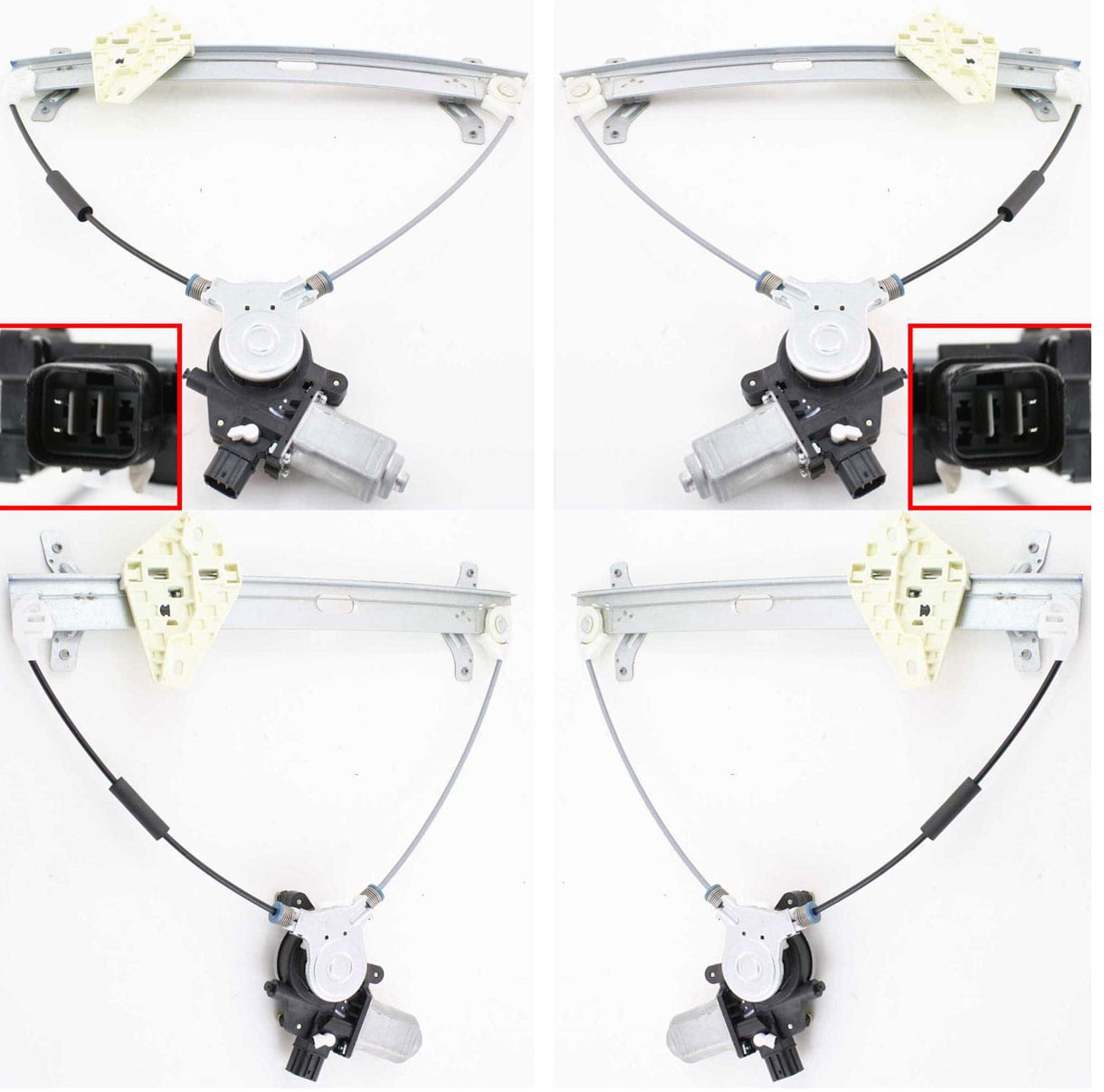 This set includes the Front and Rear Window Regulators for the Left (Driver) side.