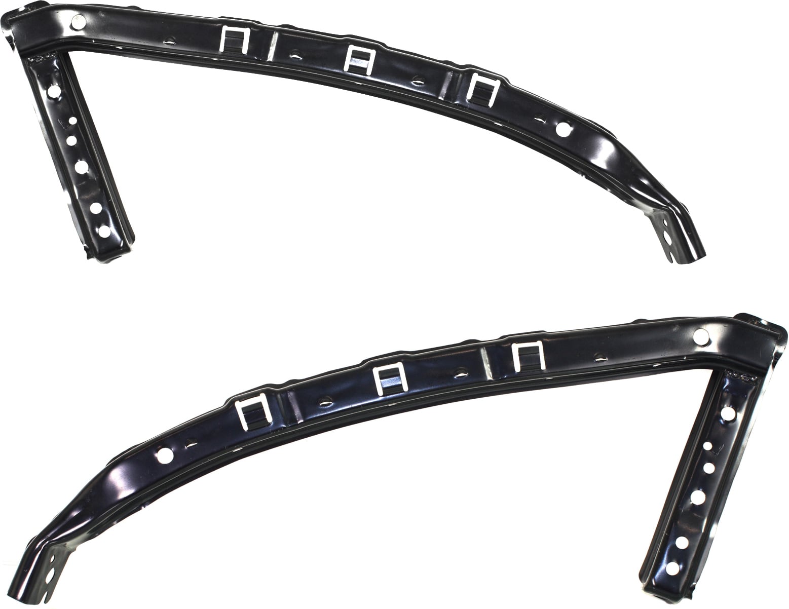 This is a pair of front bumper brackets, also known as bumper side stiffeners, covering both the Right (Passenger) and Left (Driver) sides.
