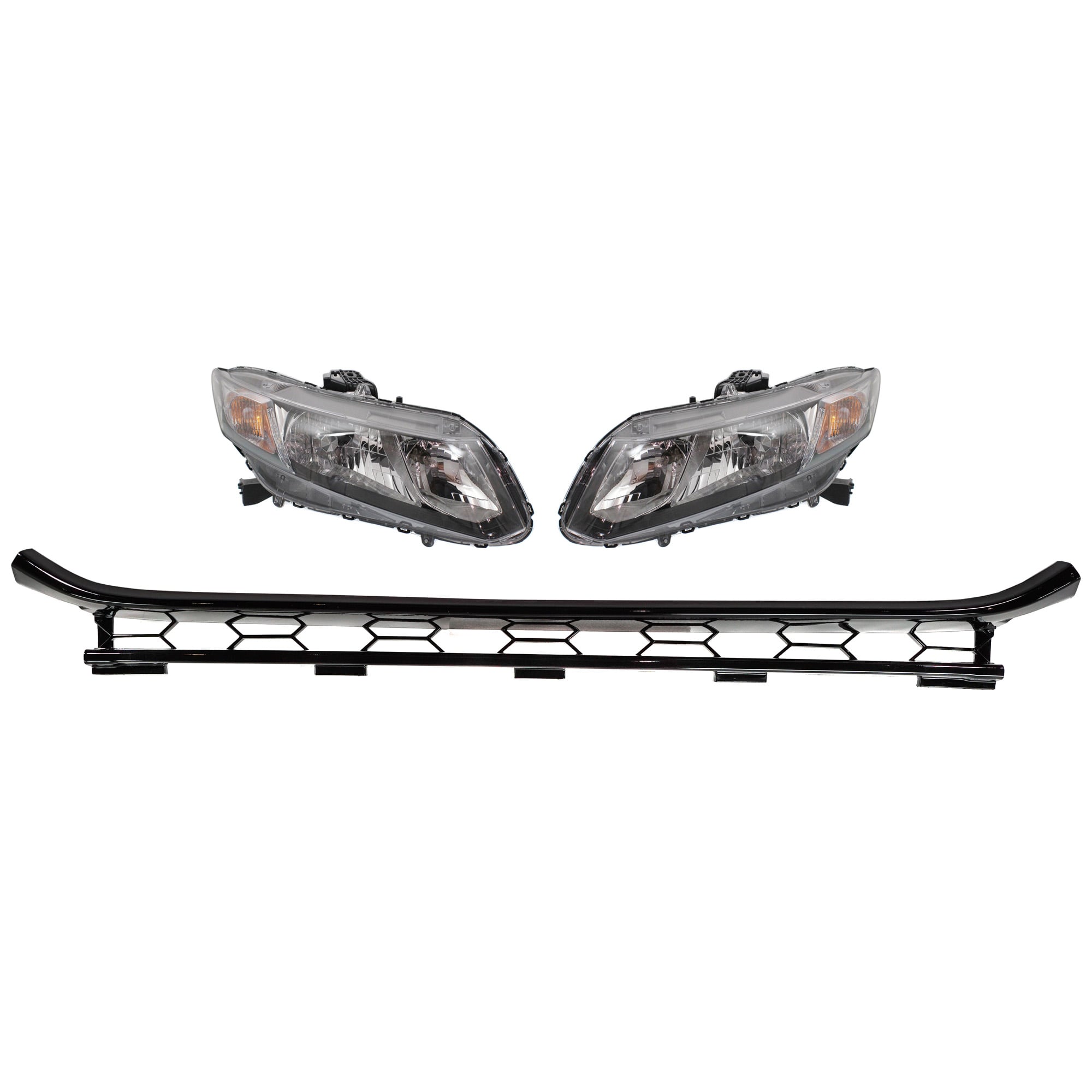 Front Bumper Molding for Honda Civic 2013-2015 Right (Passenger) and Left (Driver), 4-Piece Kit, Black, with Headlight Replacement