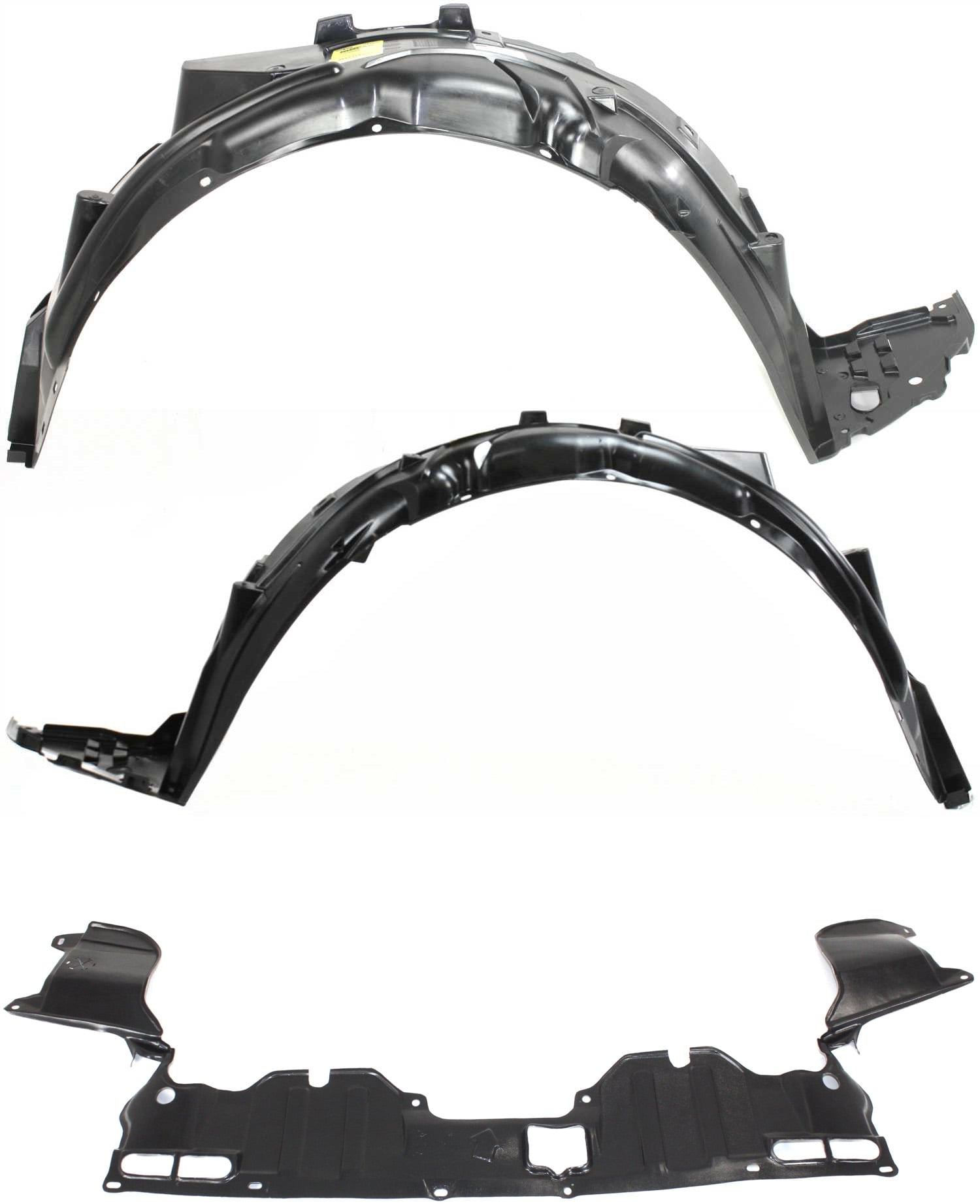Front Fender Liner for Honda Civic, 2006-2011, Right (Passenger) and Left (Driver) with Engine Splash Shield, 3-Piece Kit, Replacement