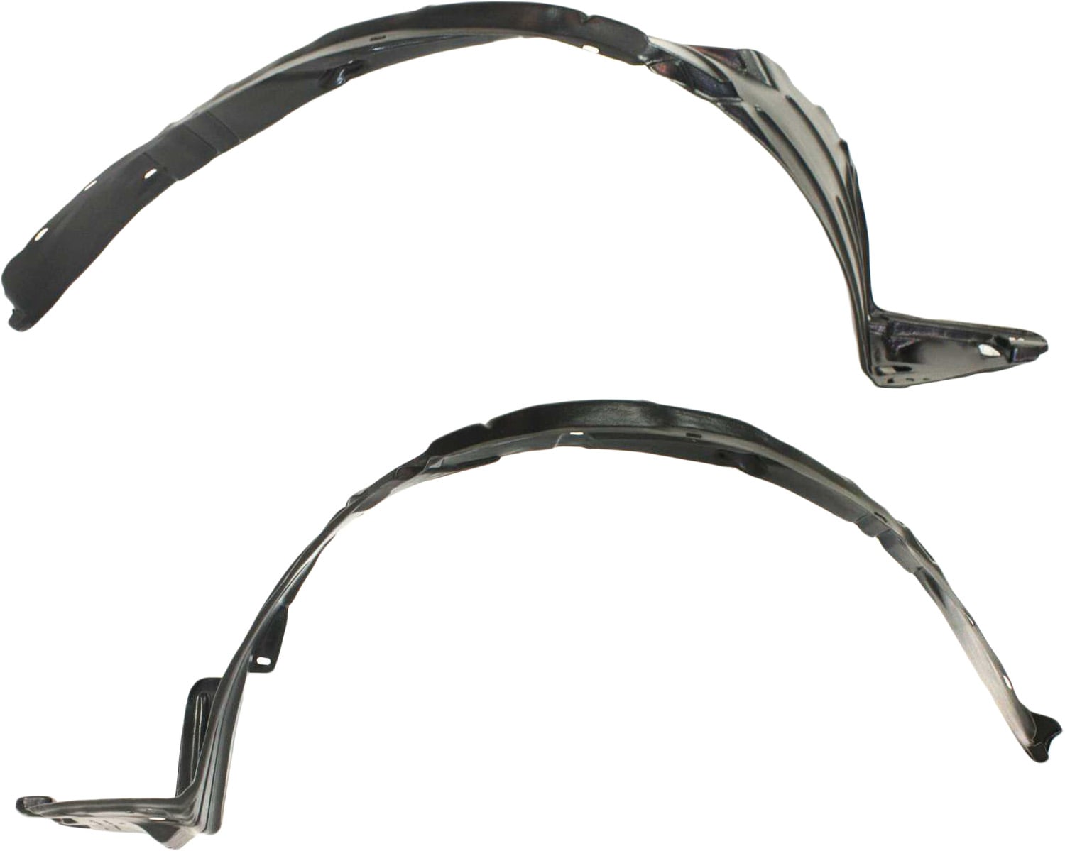 This front fender liner assembly is made of polyethylene plastic.