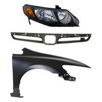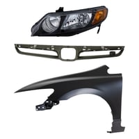 Grille Kit for 2007-2008 Honda Civic, Painted Silver Shell and Insert, 3-Piece Set with Fender and Headlight Replacement