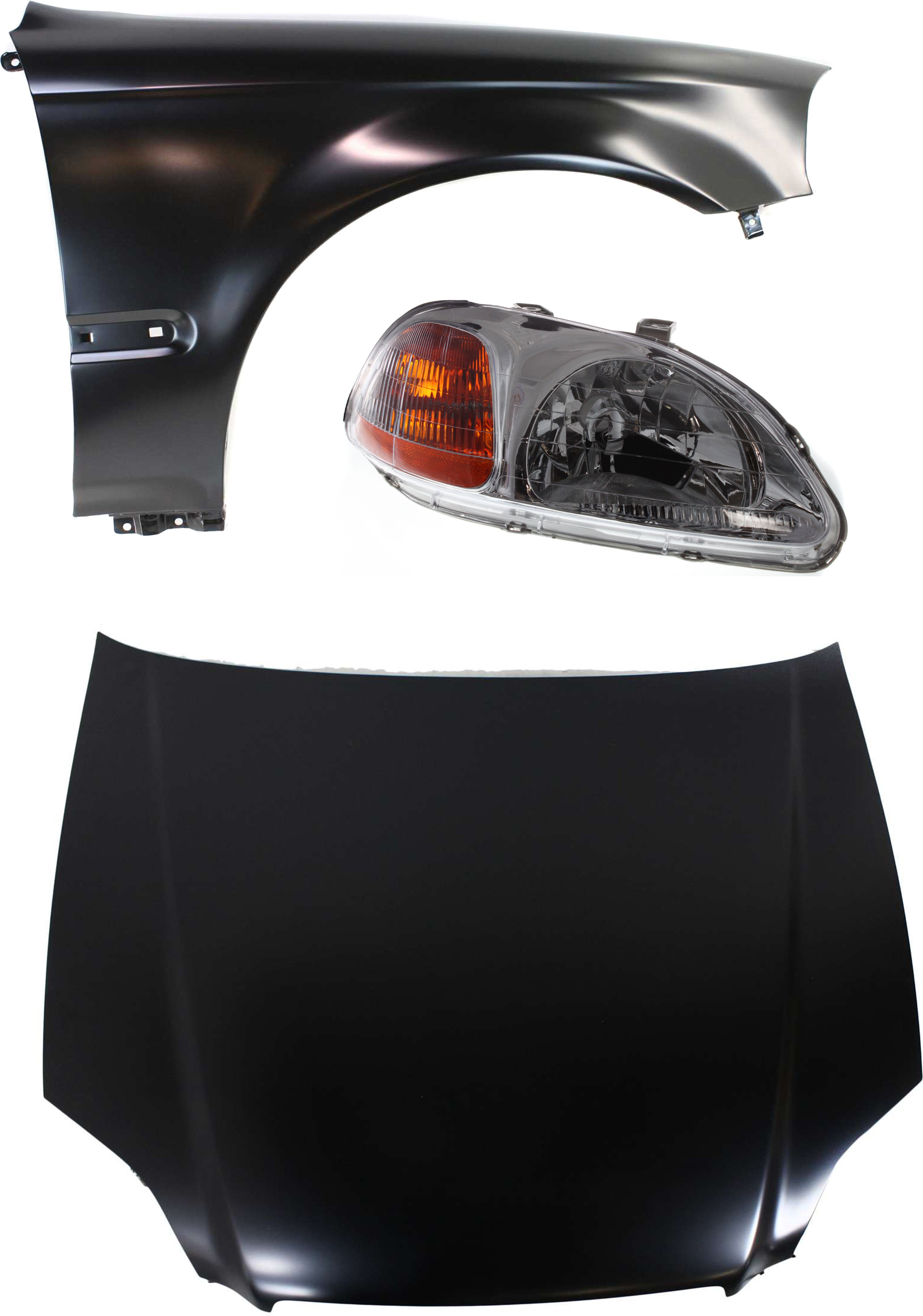 Honda Civic 1996-1998 Hood Panel for Replacement, 3-Piece Kit with Fender and Headlight