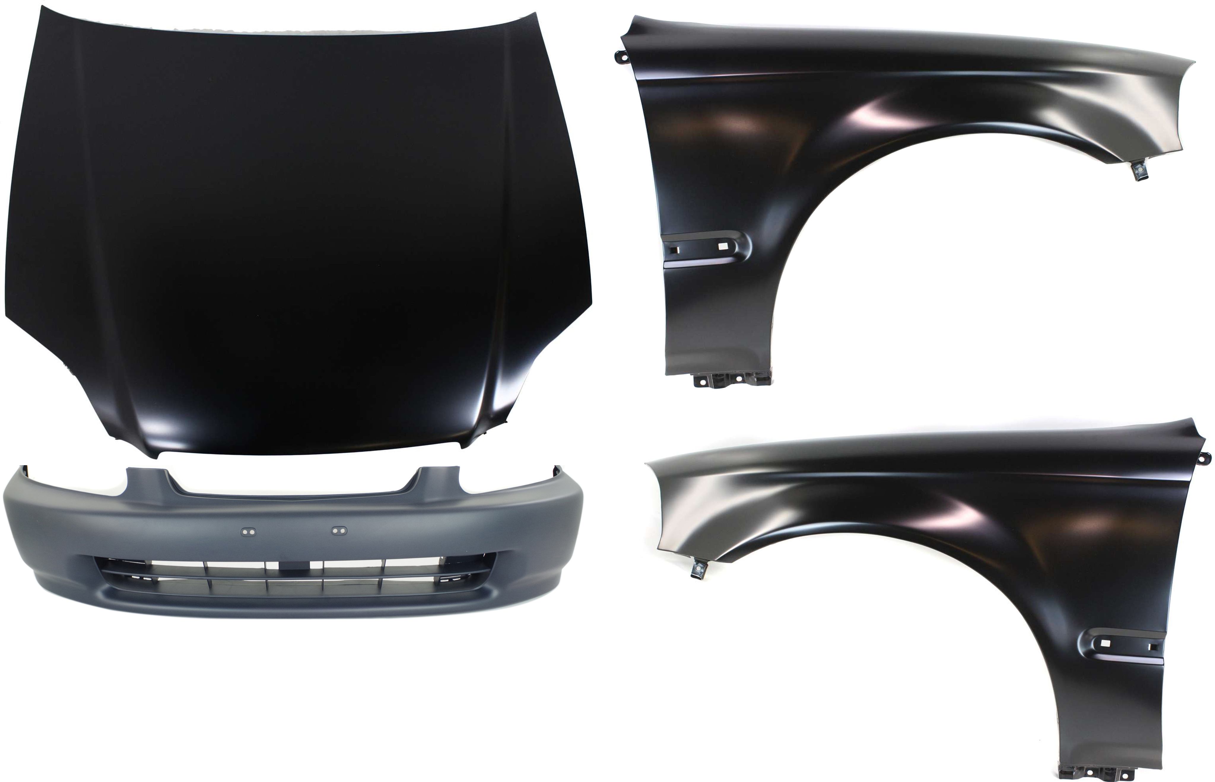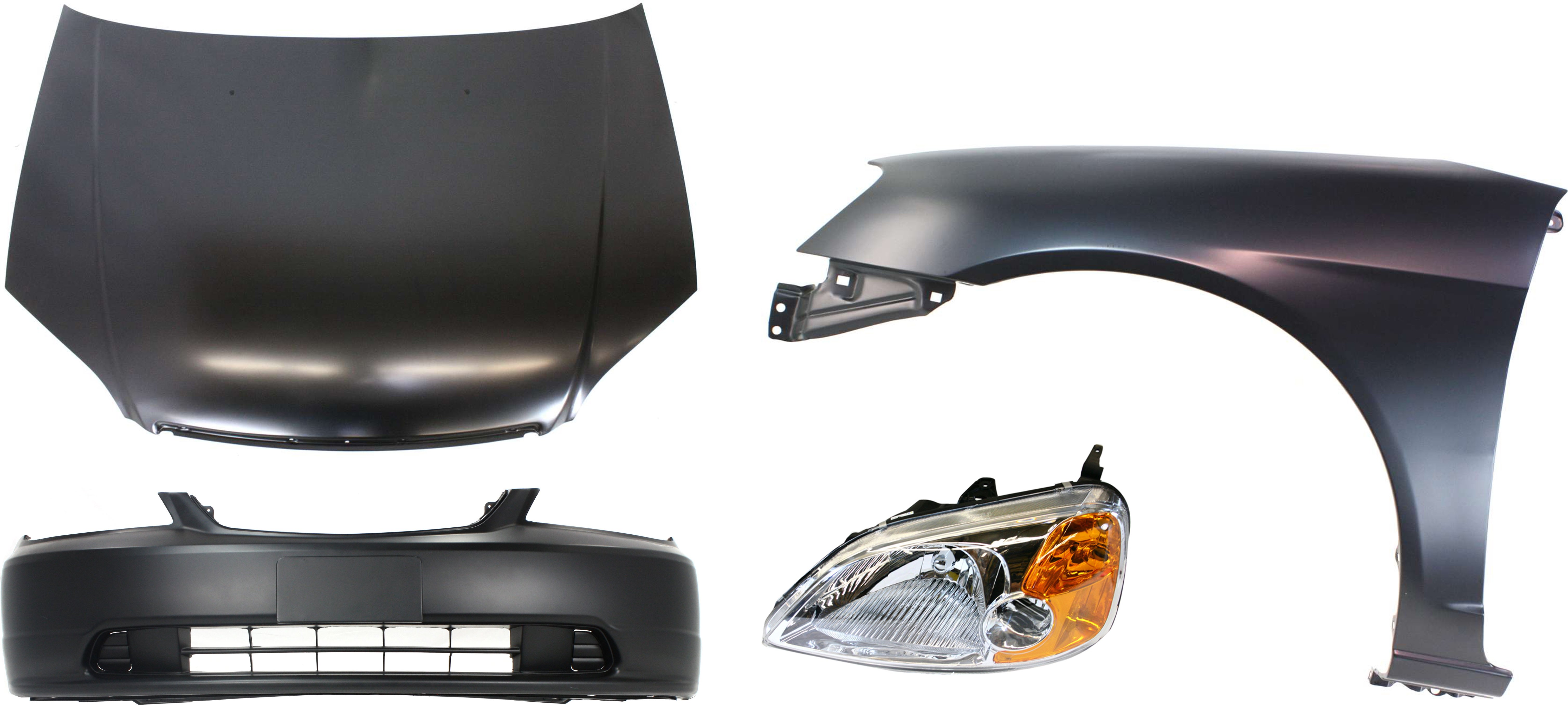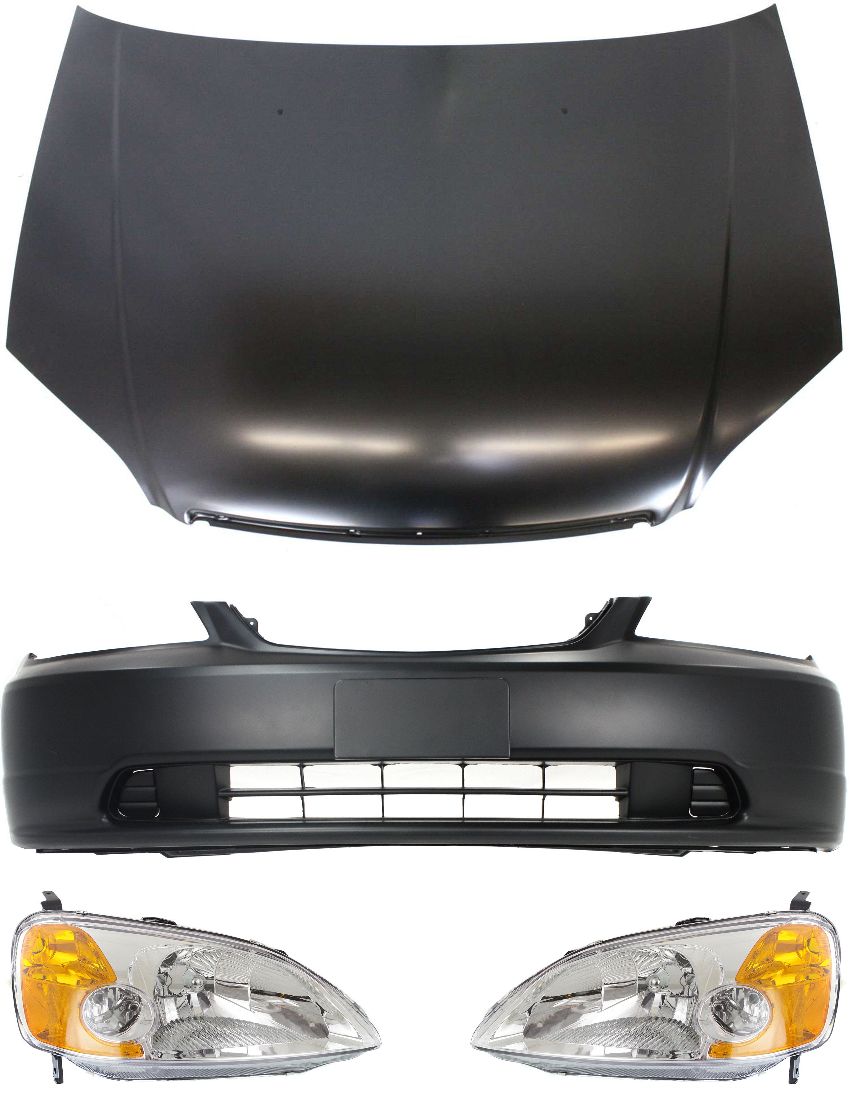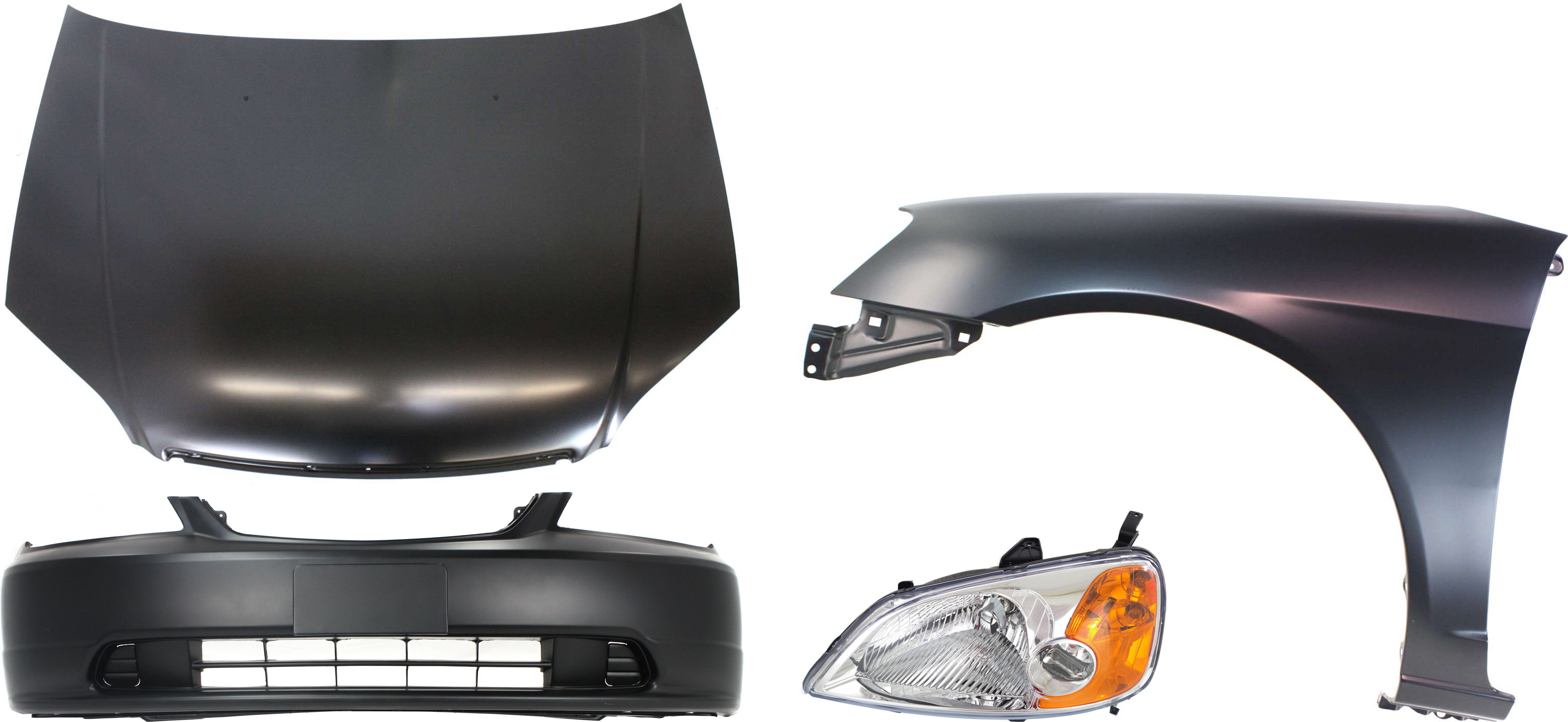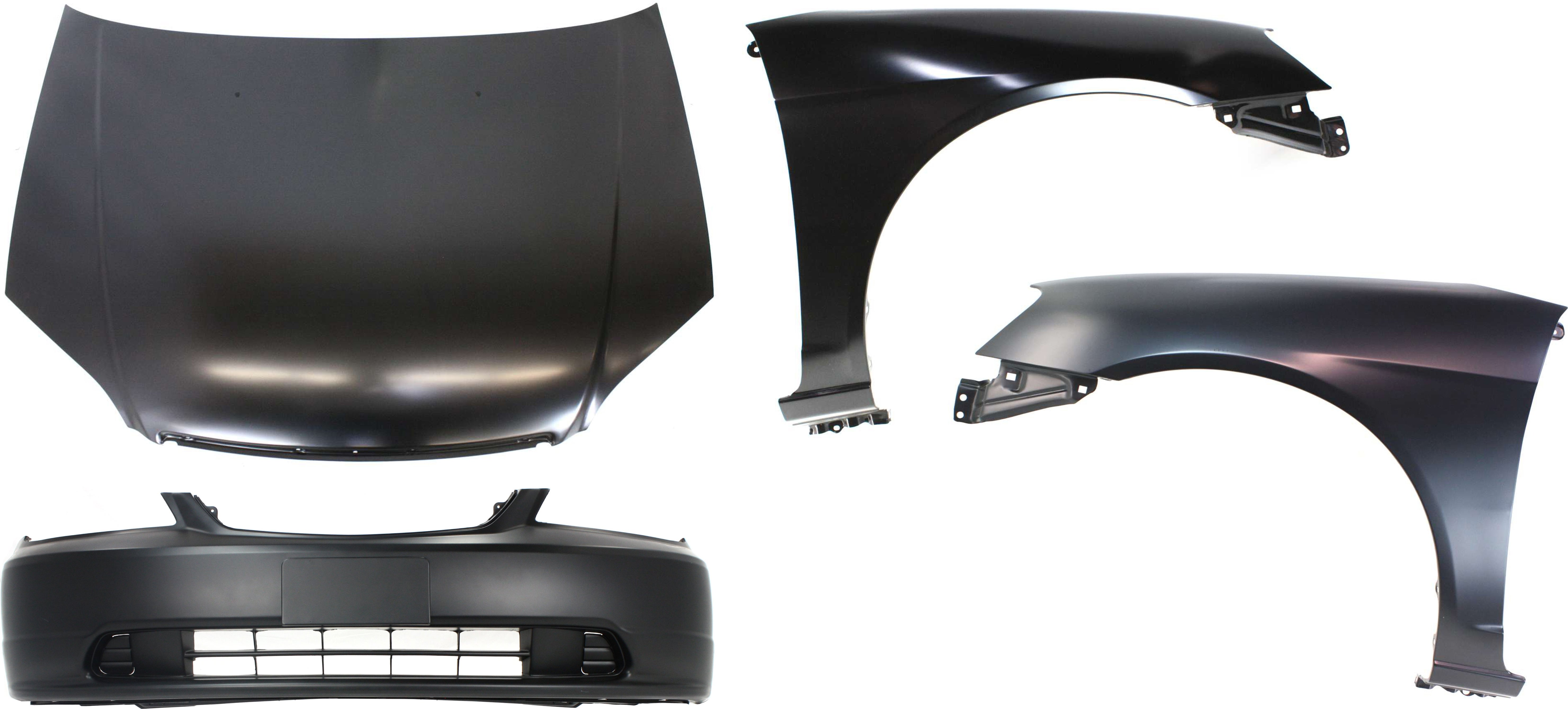 4-Piece Hood Panel, Bumper Cover, and Fenders Kit for 2001-2003 Honda Civic - Replacement Auto Parts