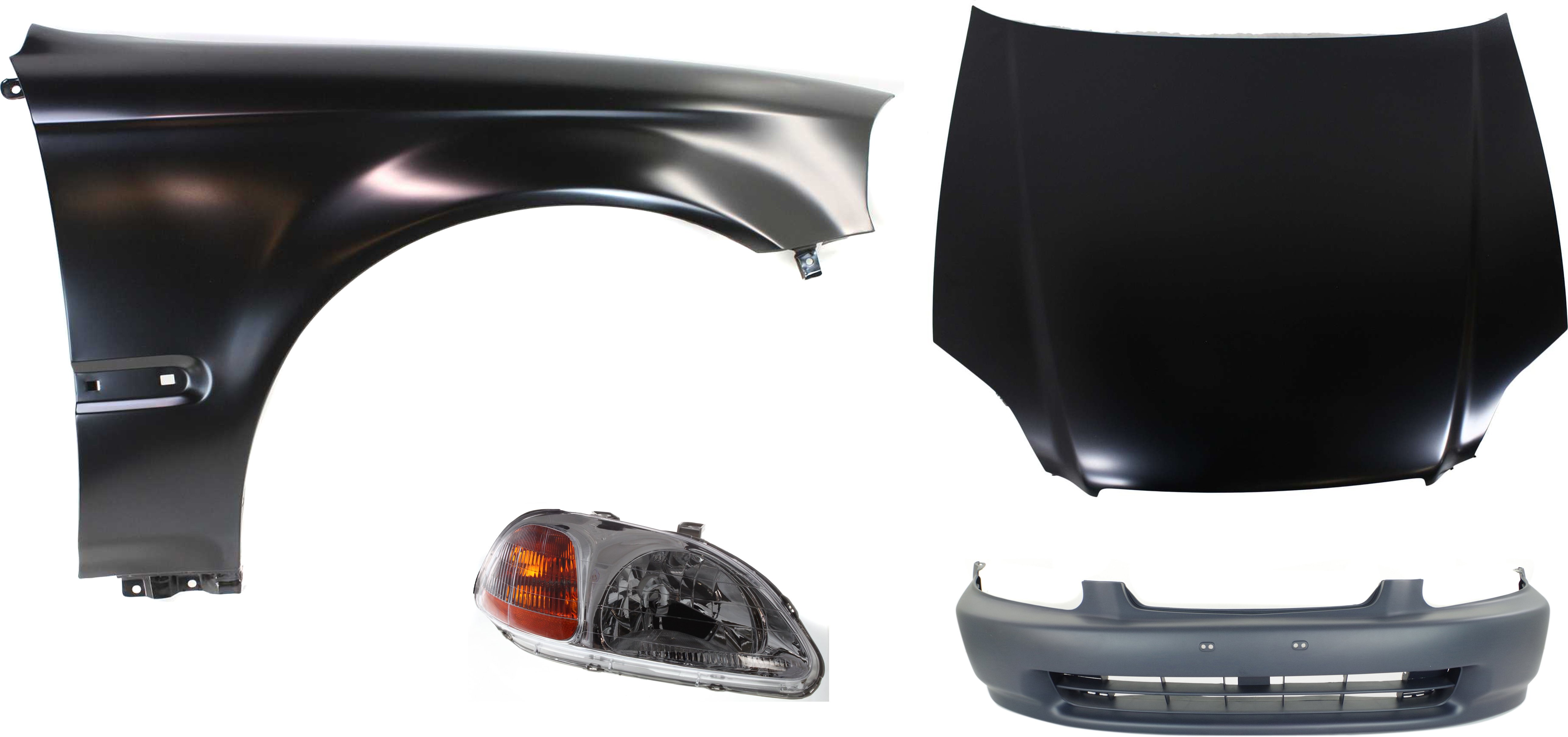 Hood Panel, Bumper Cover and Fenders 4-Piece Kit for 1996-1998 Honda Civic, Replacement Auto Parts
