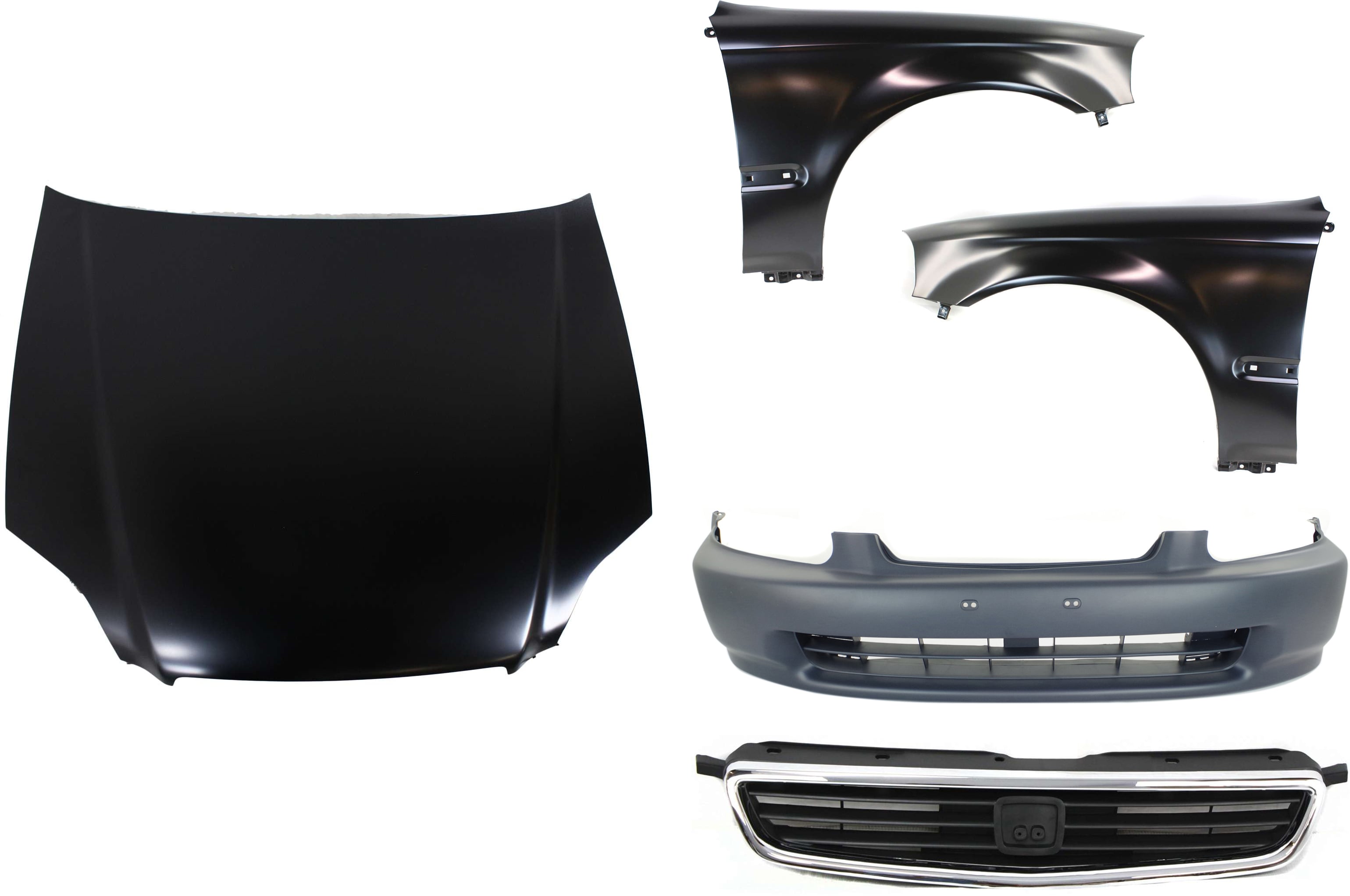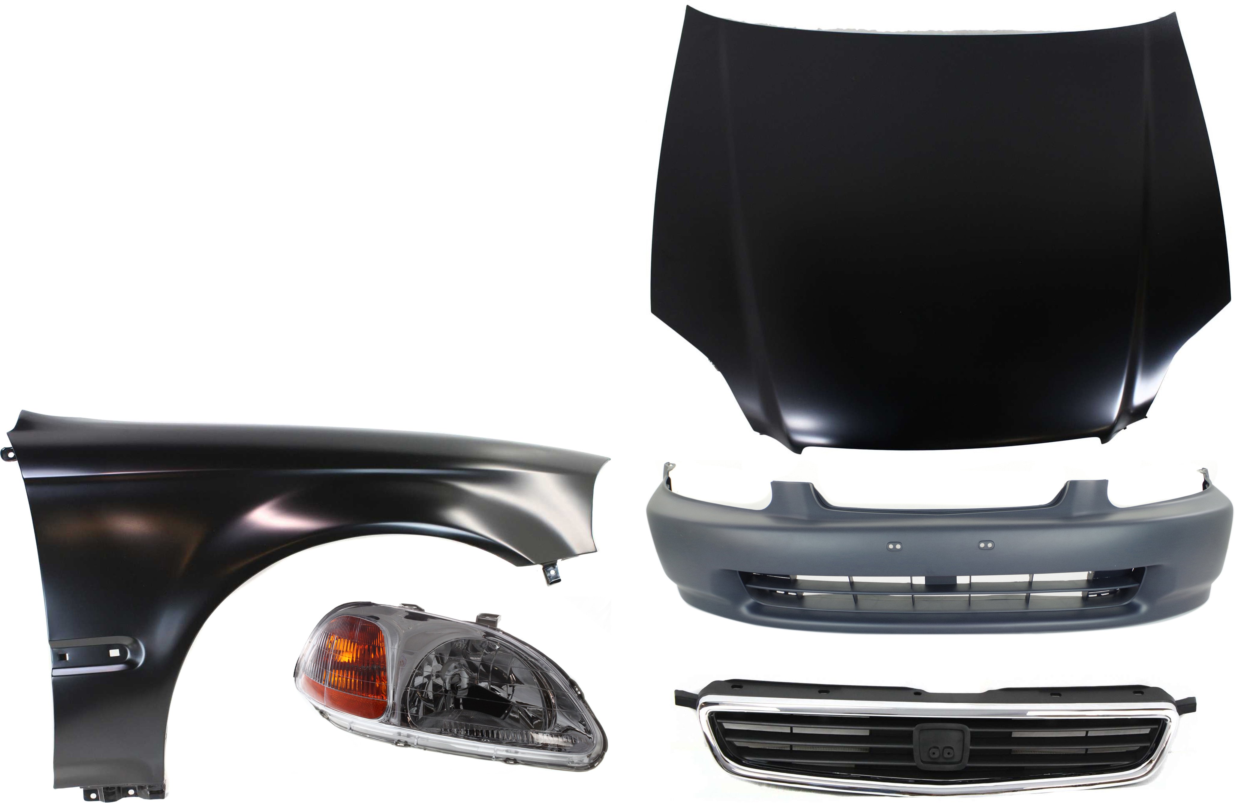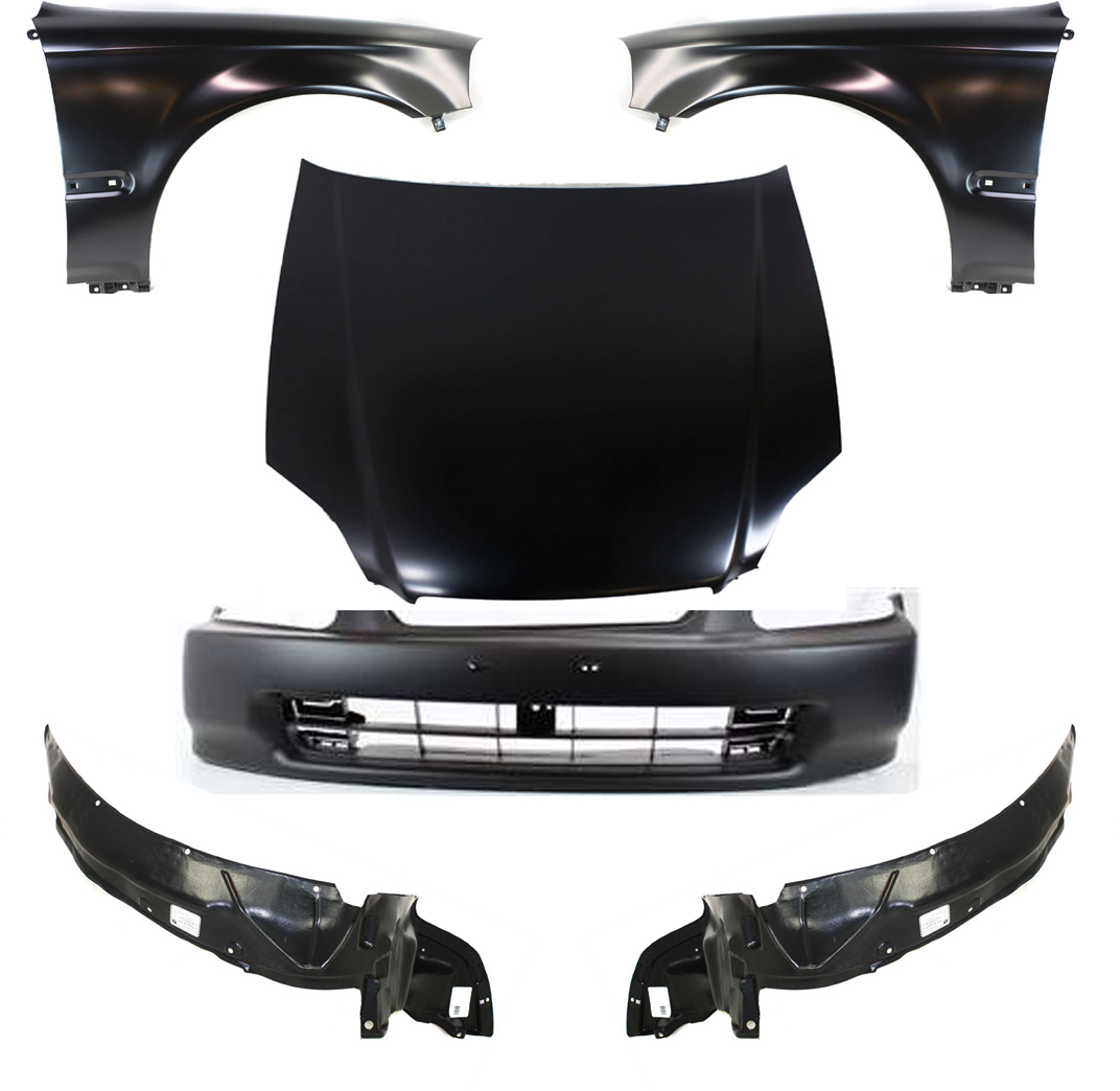Hood Panel for 1996-1998 Honda Civic, 6-Piece Kit with Bumper Cover, Fender Liners, Fenders, and Replacement