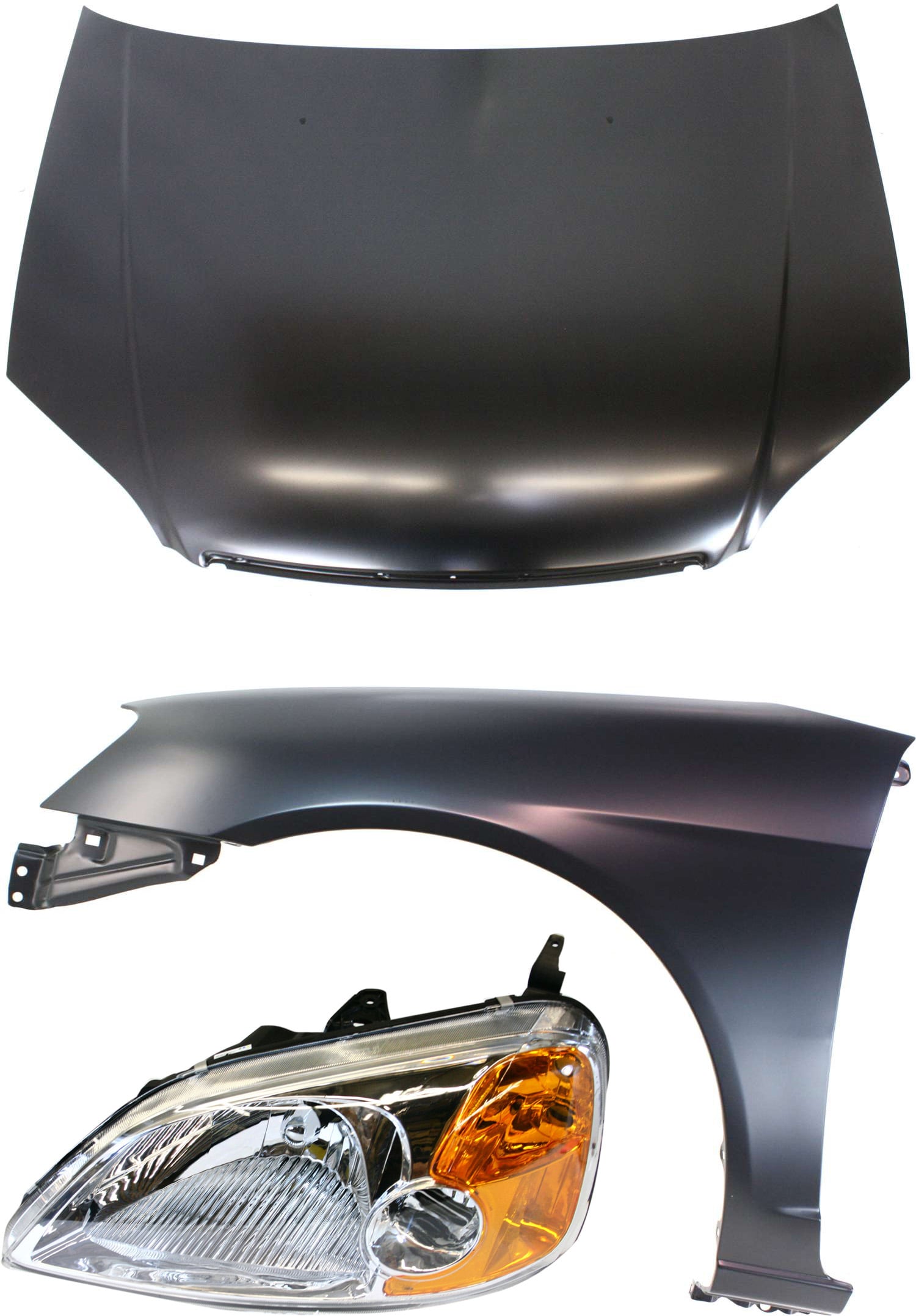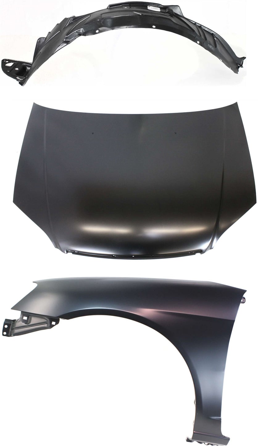 Hood Panel, Fender and Fender Liner 3-Piece Kit for 2001-2003 Honda Civic, Replacement Auto Part