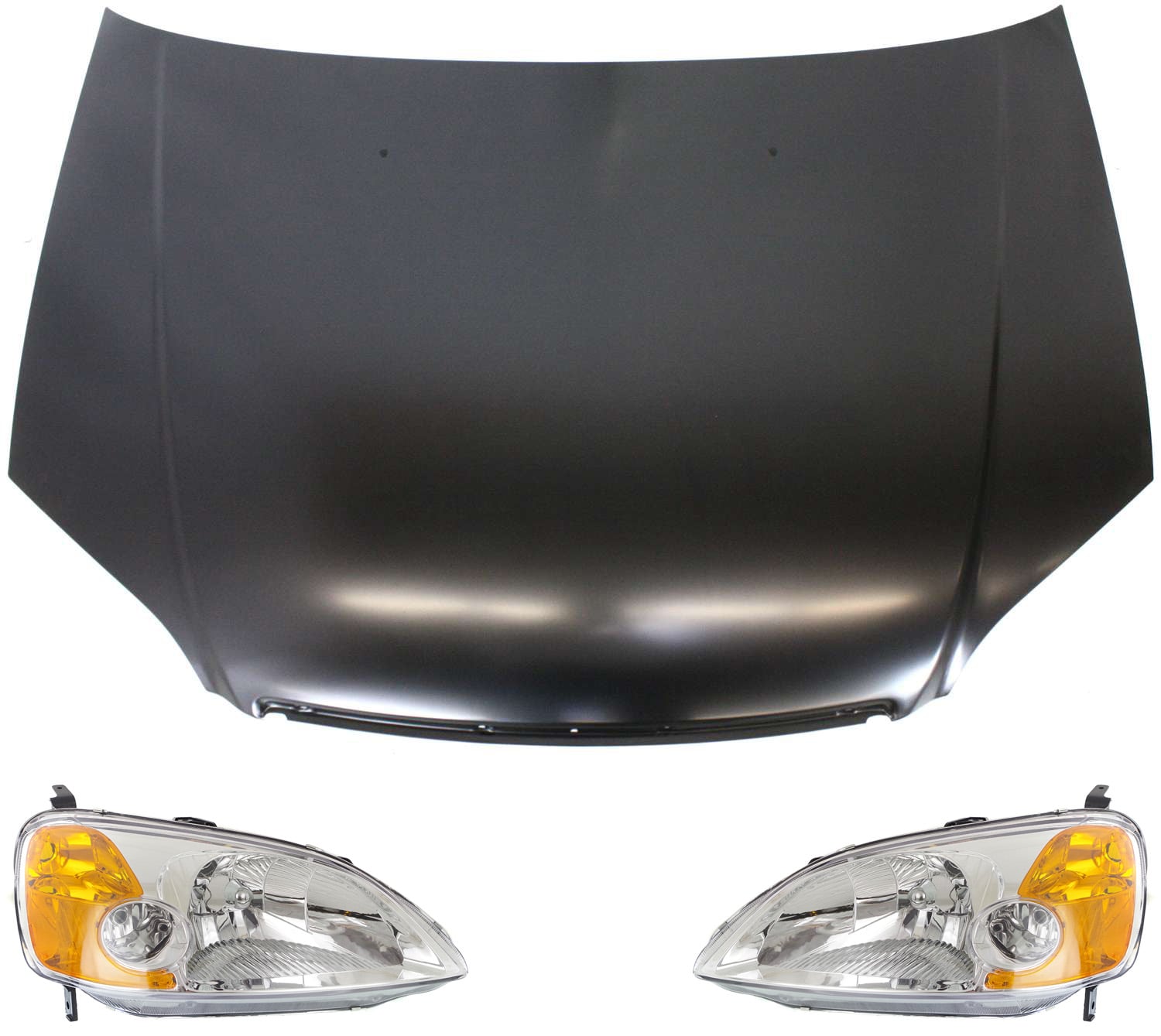 Hood Panel, Fender and Headlight Kit for 2001-2003 Honda Civic Coupe, 3-Piece Replacement