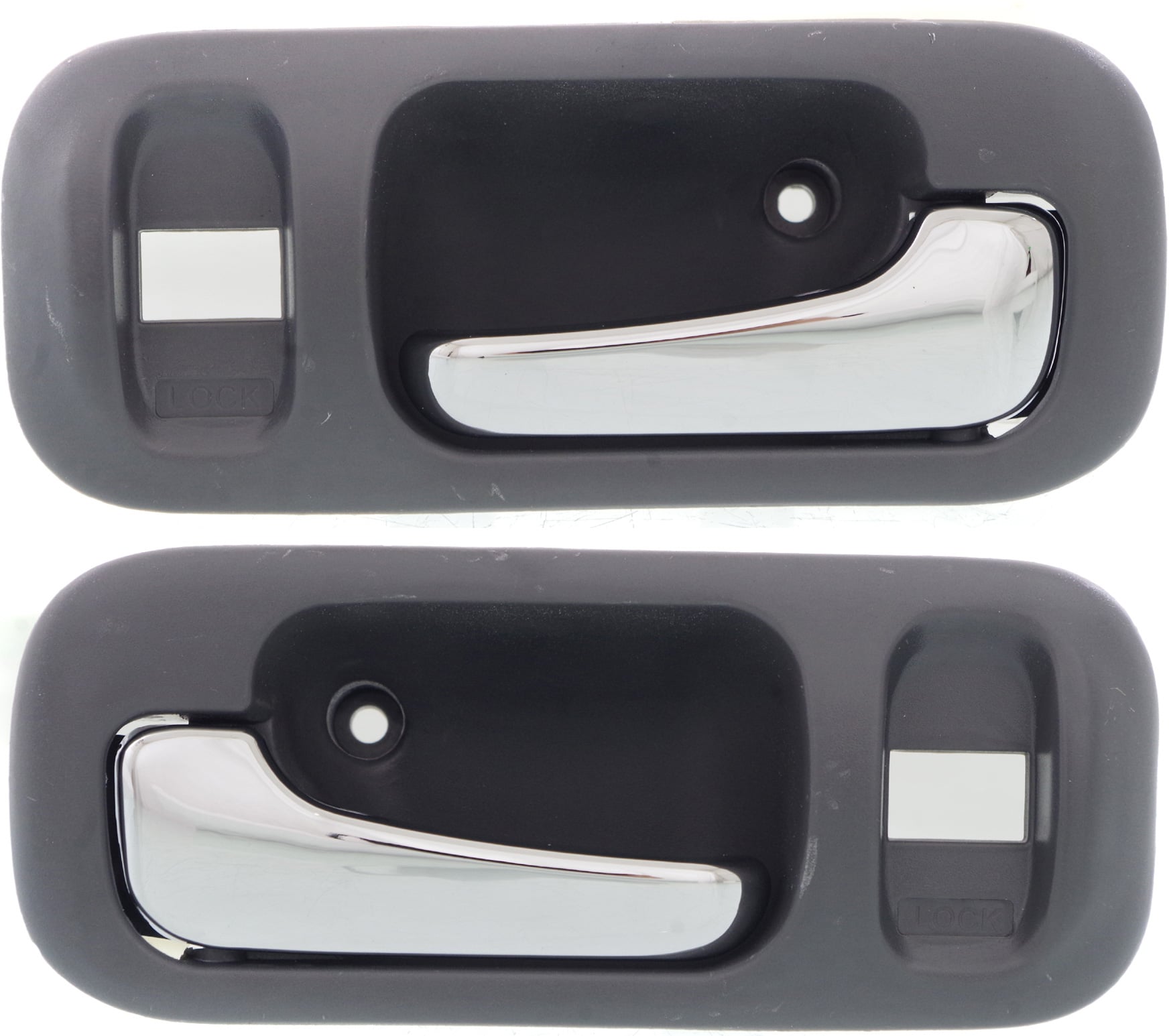 Front Door Handle Pair/Set for Honda Odyssey 1995-1998, CR-V 1997-2001, Right (Passenger) and Left (Driver), Inside, with Lock Hole, Chrome Lever + Gray Bezel, Plastic, Replacement