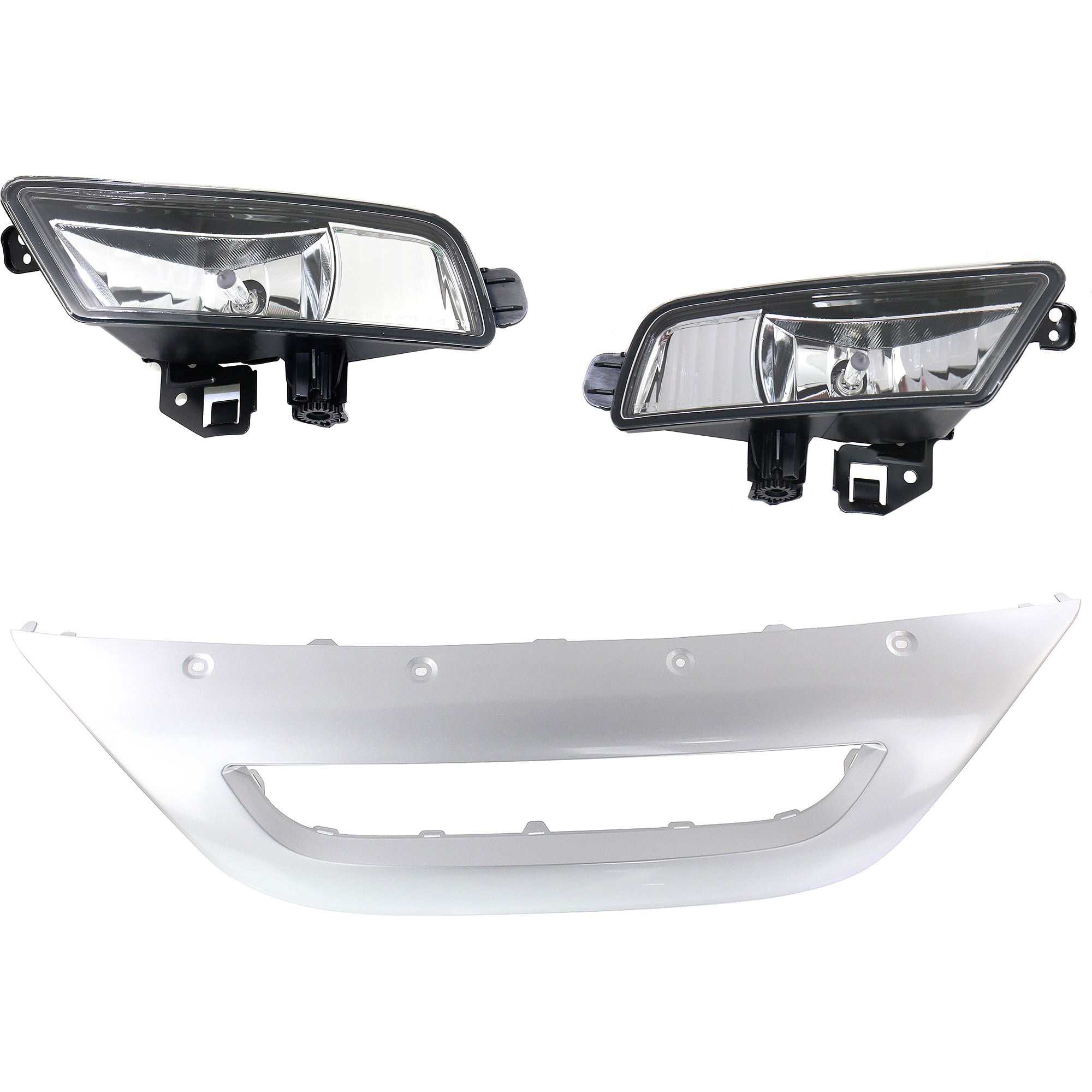 Front Lower Valance for Honda CR-V 2015-2016, Right (Passenger) and Left (Driver), 3-Piece Kit, Plastic, Painted Silver, with Fog Light, Replacement