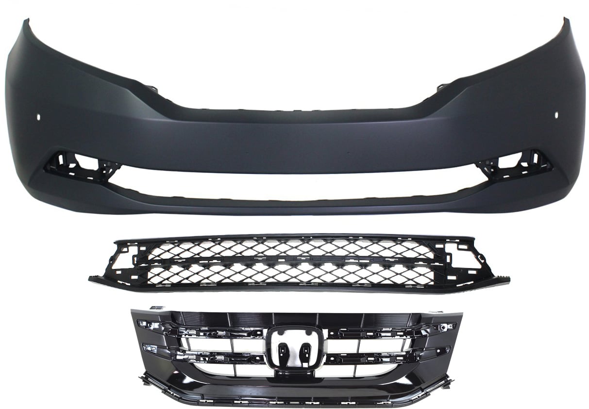 Front Bumper Cover for Honda Odyssey 2014-2017, 3-Piece Kit with Bumper Grille and Grille Assembly, Replacement