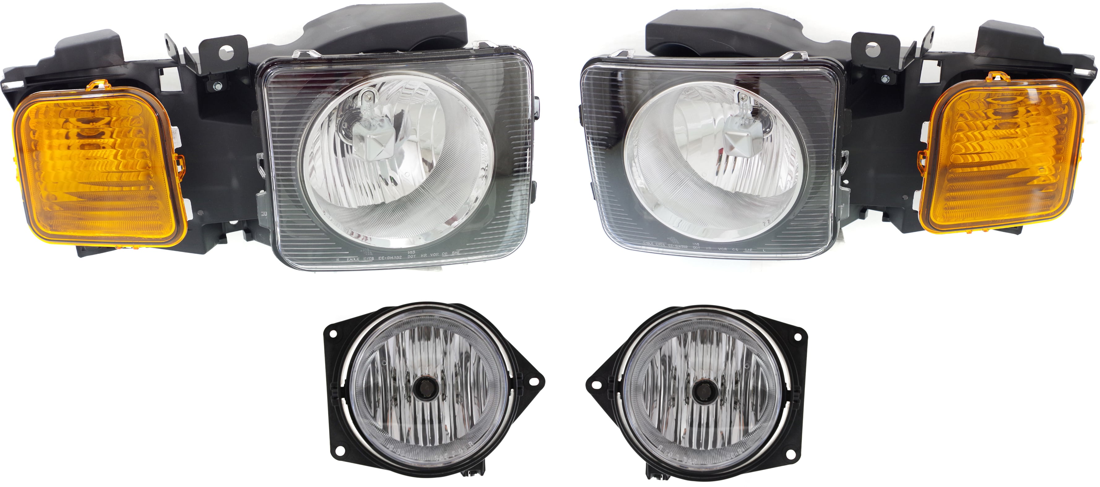 Headlight Assembly Kit for Hummer H3 2006-2010 / H3T 2009-2010, Right (Passenger) and Left (Driver), Halogen, 4-Piece Set with Fog Lights, Replacement