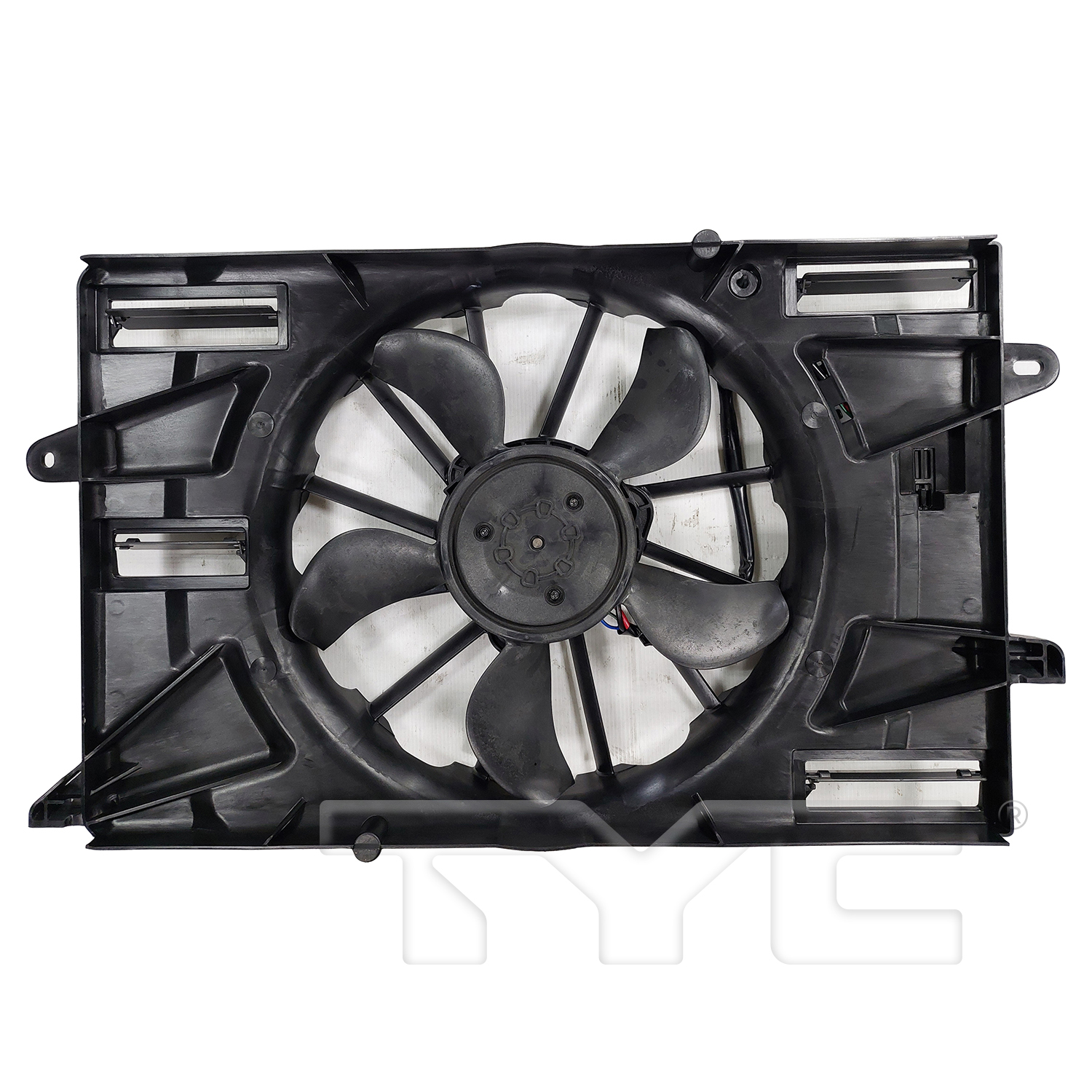 This is a Dual Fan Assembly. It features Heavy Duty Cooling and includes the Control Module. It fits 2.4L, 2.0L, and 3.2L engines.