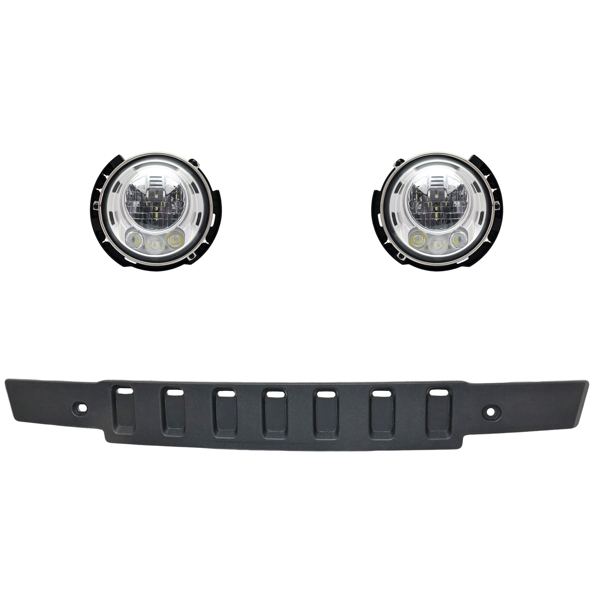 Headlight Assembly Kit for Jeep Wrangler 2007-2017, Wrangler JK 2018, Right (Passenger) and Left (Driver) LED Light, 3-Piece Set with Bumper Trim, Replacement