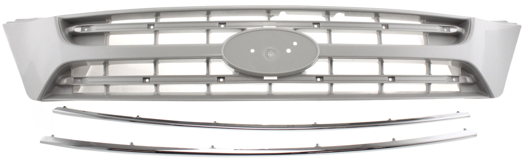 This grille is Painted Silver and includes Chrome Strips.
