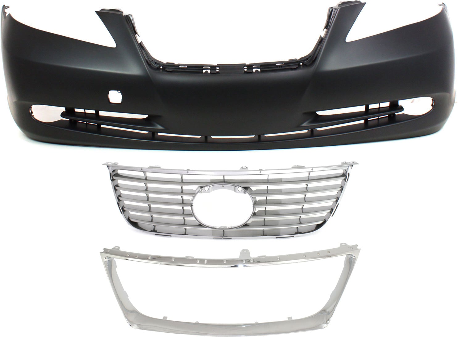 Front Bumper Cover for Lexus ES350 2007-2009, Primed (Ready to Paint), 3-Piece kit with Chrome Grilles, Replacement