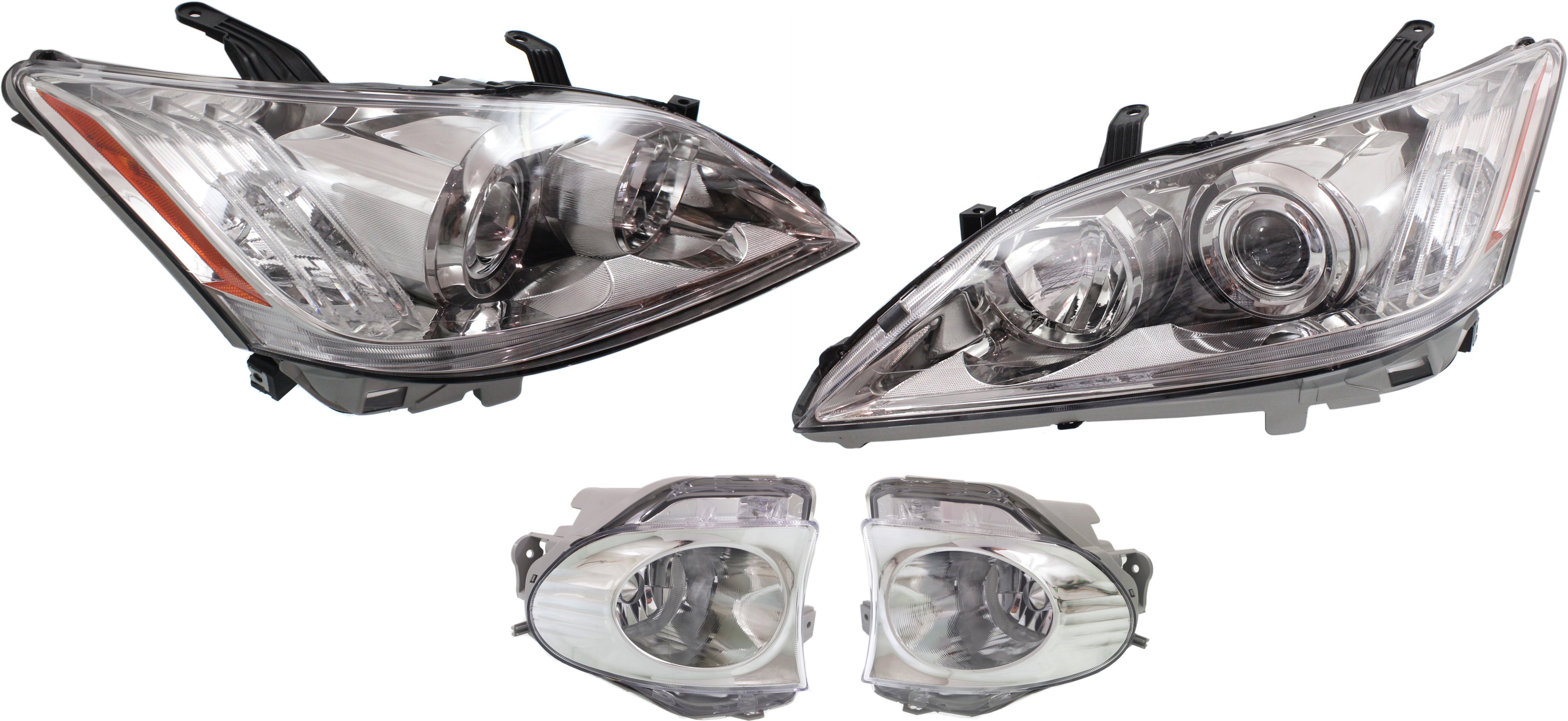 Headlight Kit for 2007-2009 Lexus ES350, Right (Passenger) and Left (Driver), Lens and Housing, Halogen, 4-Piece with Fog Lights - Replacement