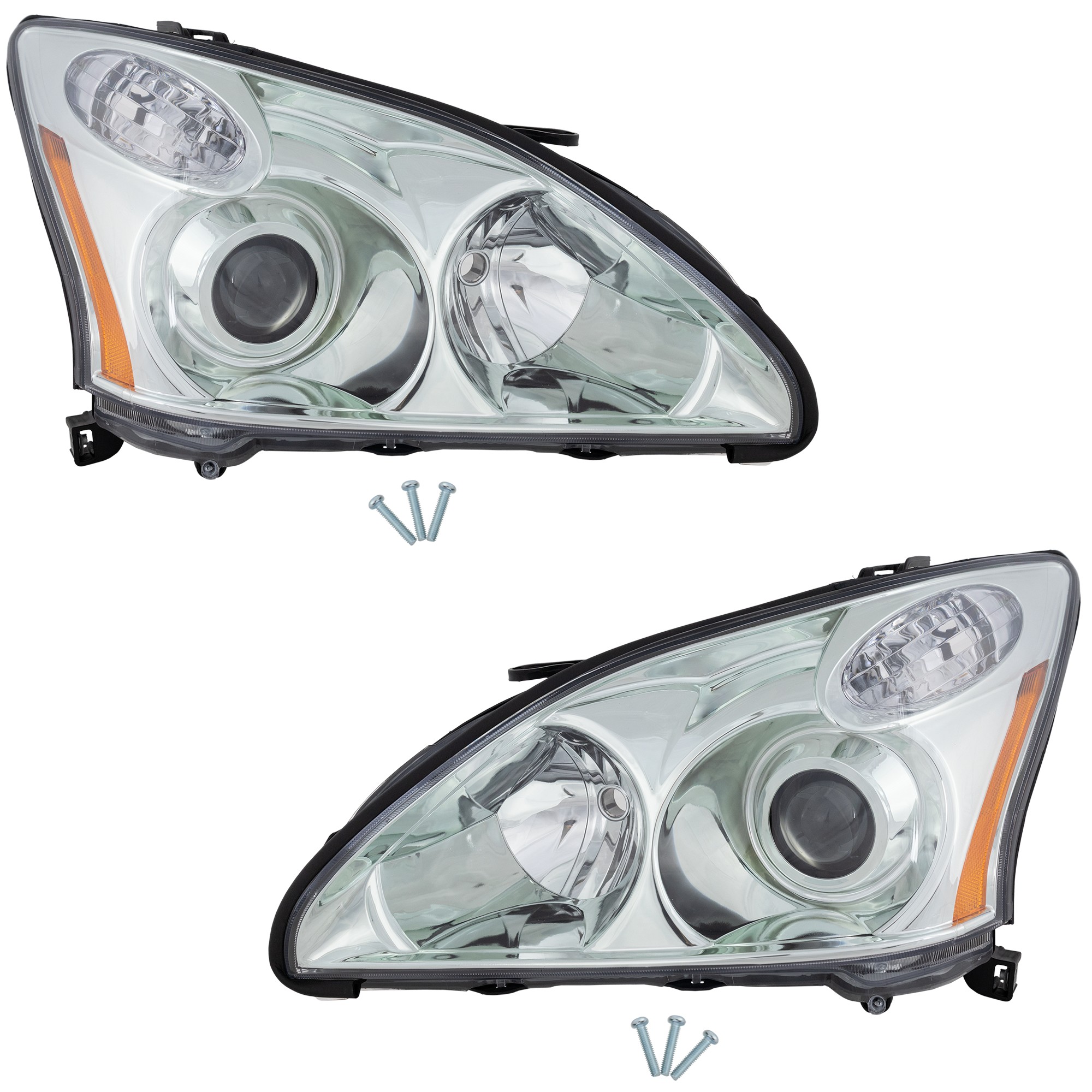Headlight Lens and Housing Pair/Set for 2004-2006 Lexus RX330, Right (Passenger) and Left (Driver), w/o HID Pair/Set, w/o Adaptive Front-Lighting System, Xenon, Japan Built Vehicle Replacement