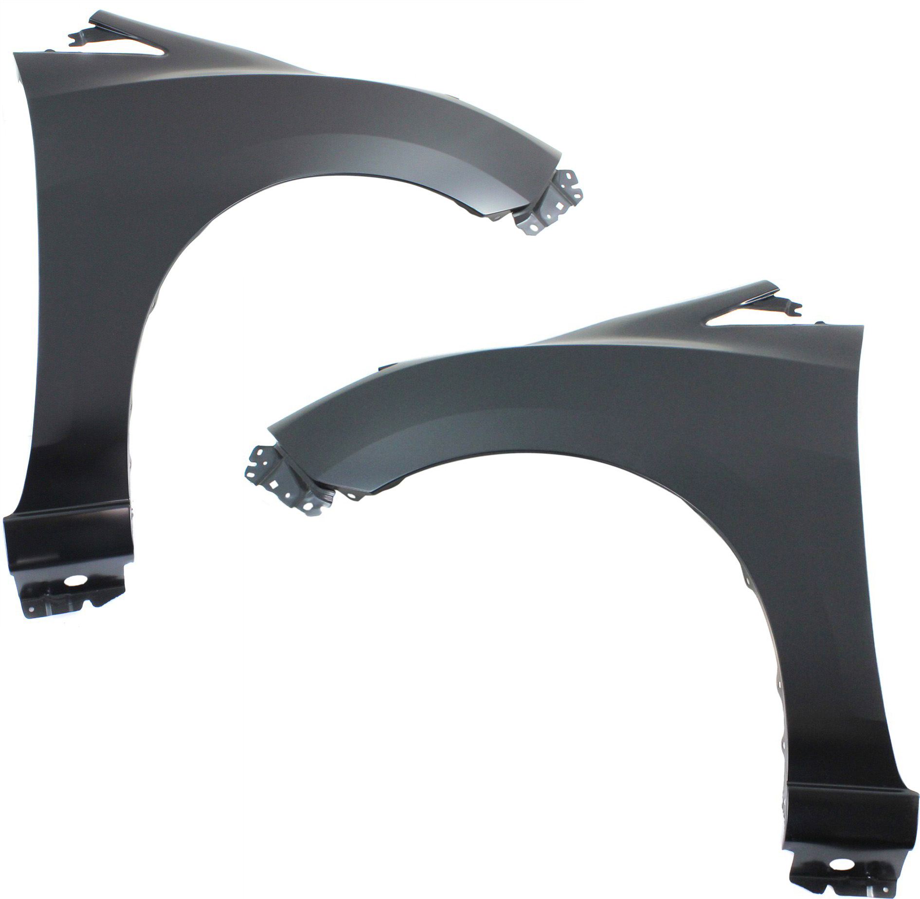 Front Fender Pair/Set for 2012-2017 Mazda 5, Primed (Ready to Paint), Steel, Right (Passenger) and Left (Driver), Without Signal Light Hole, Without Rocker Molding Hole Replacement