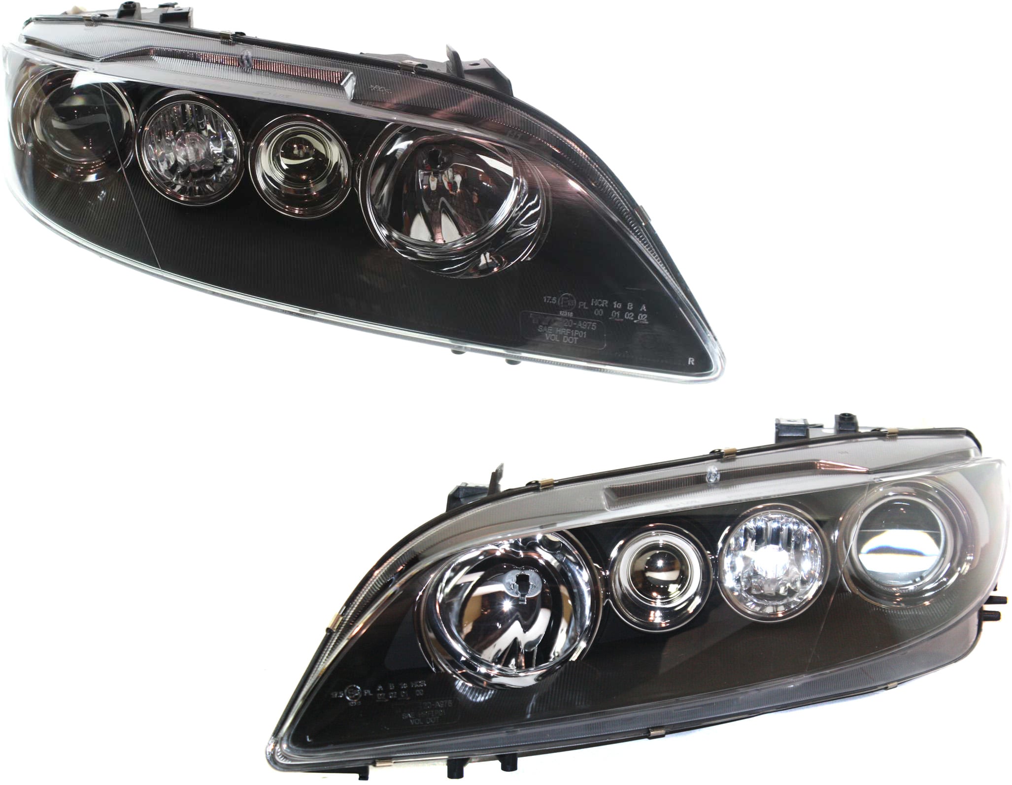 Headlight Pair/Set for 2003-2005 Mazda 6, Right (Passenger) and Left (Driver), Lens and Housing, without Fog Lights, Replacement