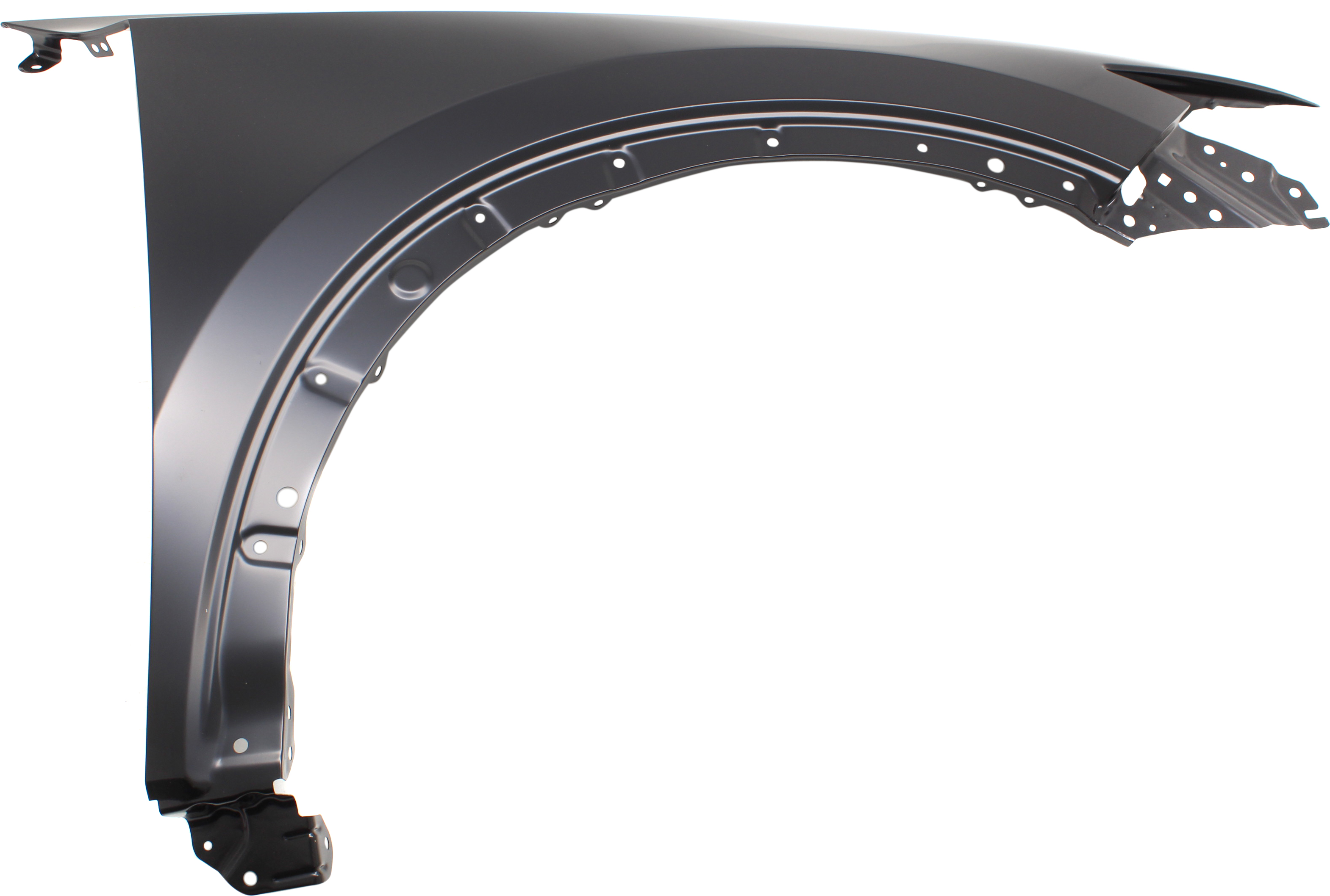 This replacement fender assembly is primed and ready to paint.